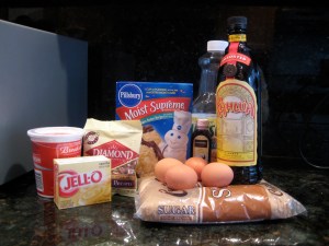 Then you open a box of cake mix and add some eggs and oil. Put half the batter in a bowl and set it aside…