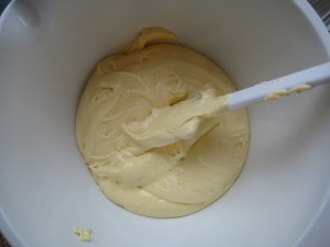 Finally cover with the rest of the Kahlua batter and marbleize with a knife.