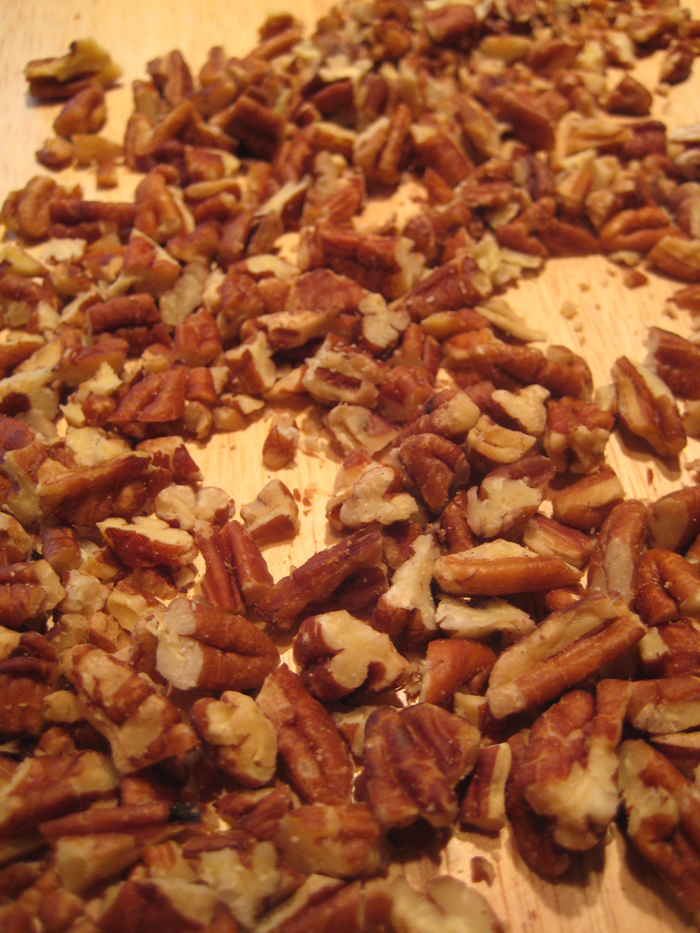 Then add the Kahlua, brown sugar and pecans to the other half….