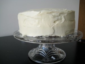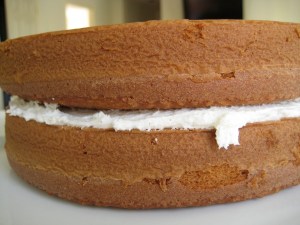 He has amazing taste. White on white is my favorite cake too! I had never made a white on white cake and therefore called up my mom for a recipe. She had made cupcakes with this recipe and said it would make a delicious cake.