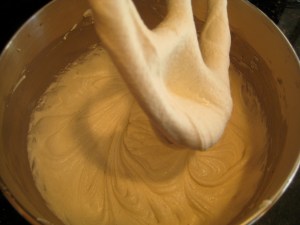 and mix well continuing to add the rest of egg mixture in small increments beating well after
