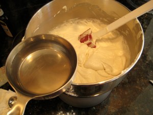 Add boil water and stir to combine.  Beat on higher speed for 30 seconds.