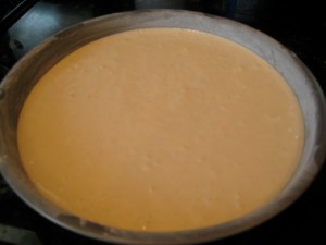 beat at medium speed for 2 mins.  Scrape bowl and add small amount of egg mixture