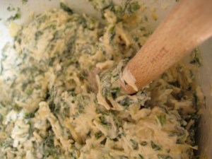 The only ingredient you have to prep are the canned artichokes. You have to finely chop them…