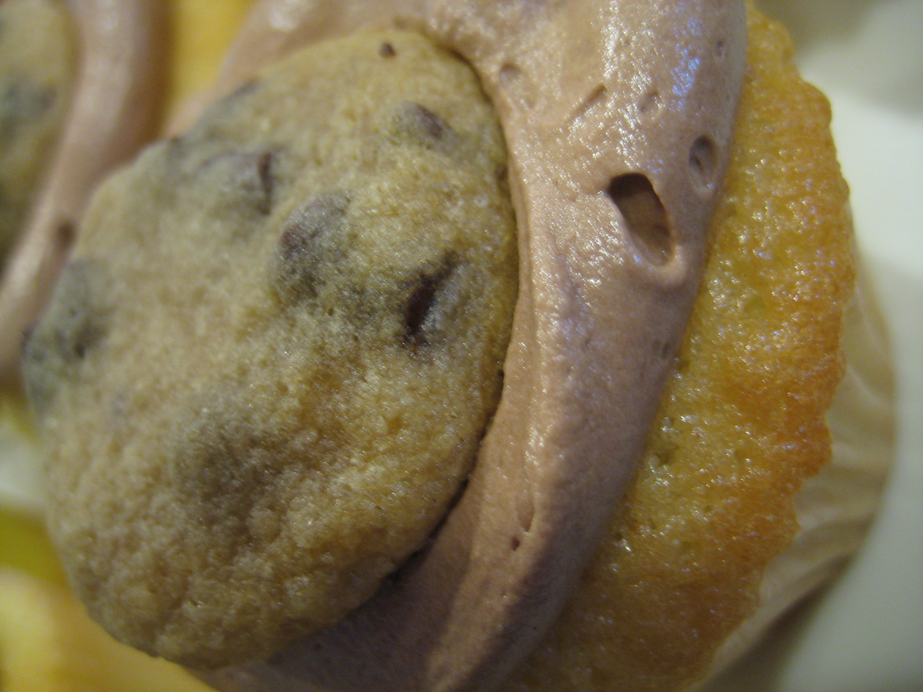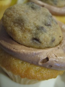 So as I said, this is a very time consuming recipe. You have to make the dough, bake the baby cookies, make the cupcake dough and then the chocolate buttercream. Make the cookies and dough ahead of time. You will thank yourself. It will save about an hour or more when you make the actual cupcakes.