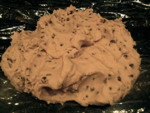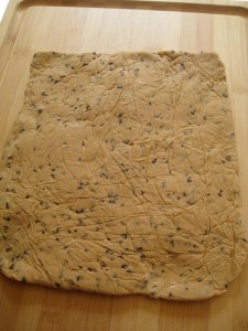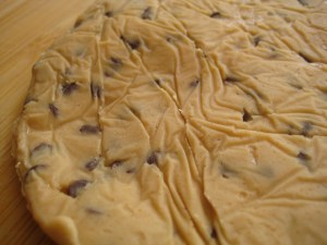 (I didn’t do that. I just put the dough on a sheet of plastic wrap and spread it out and into a square shape with my finger tips, working fast so the dough didn’t get too warm. I then wrapped up the sides and set it in the refrigerator overnight. This seemed much faster and easier to me)