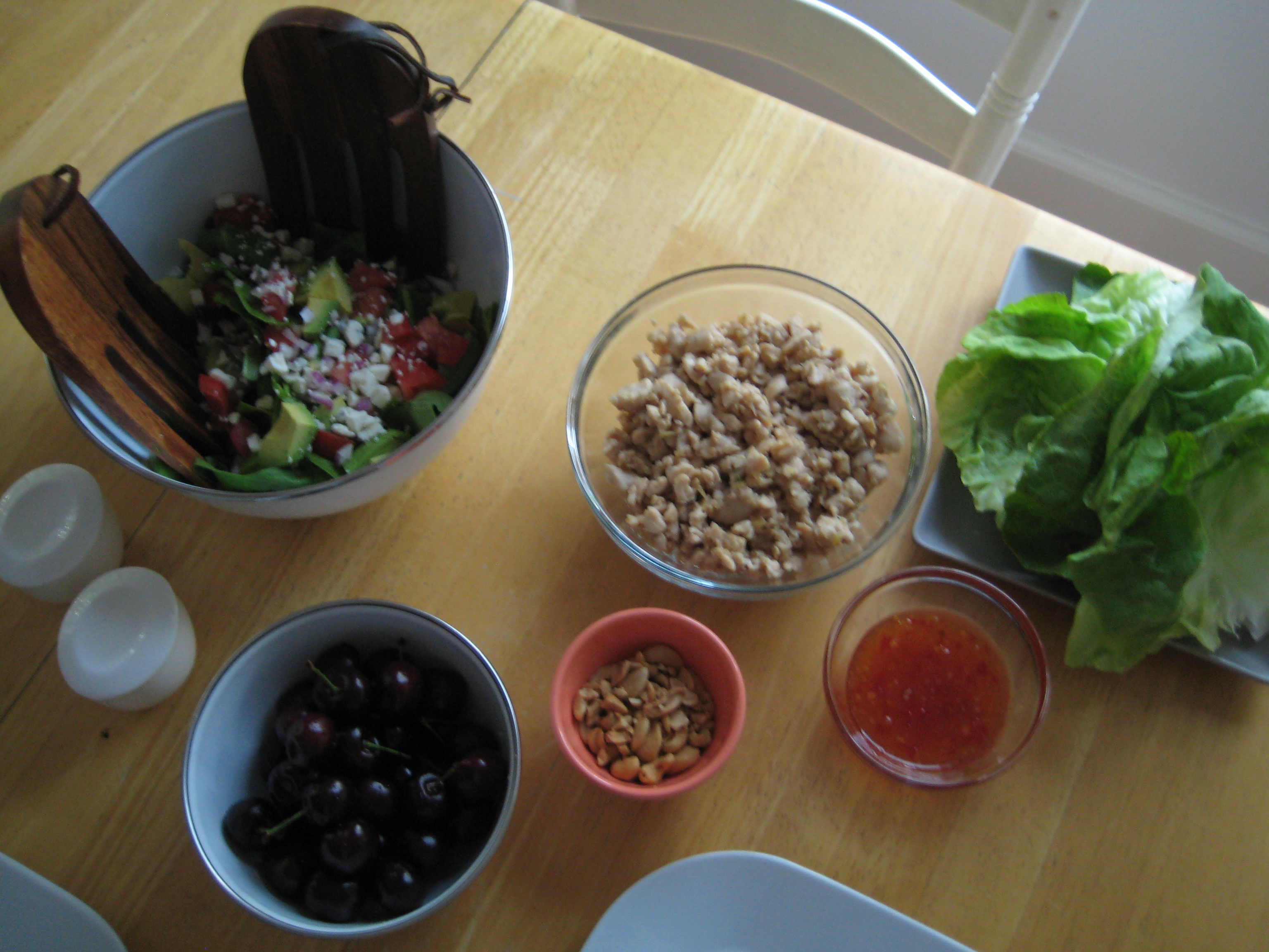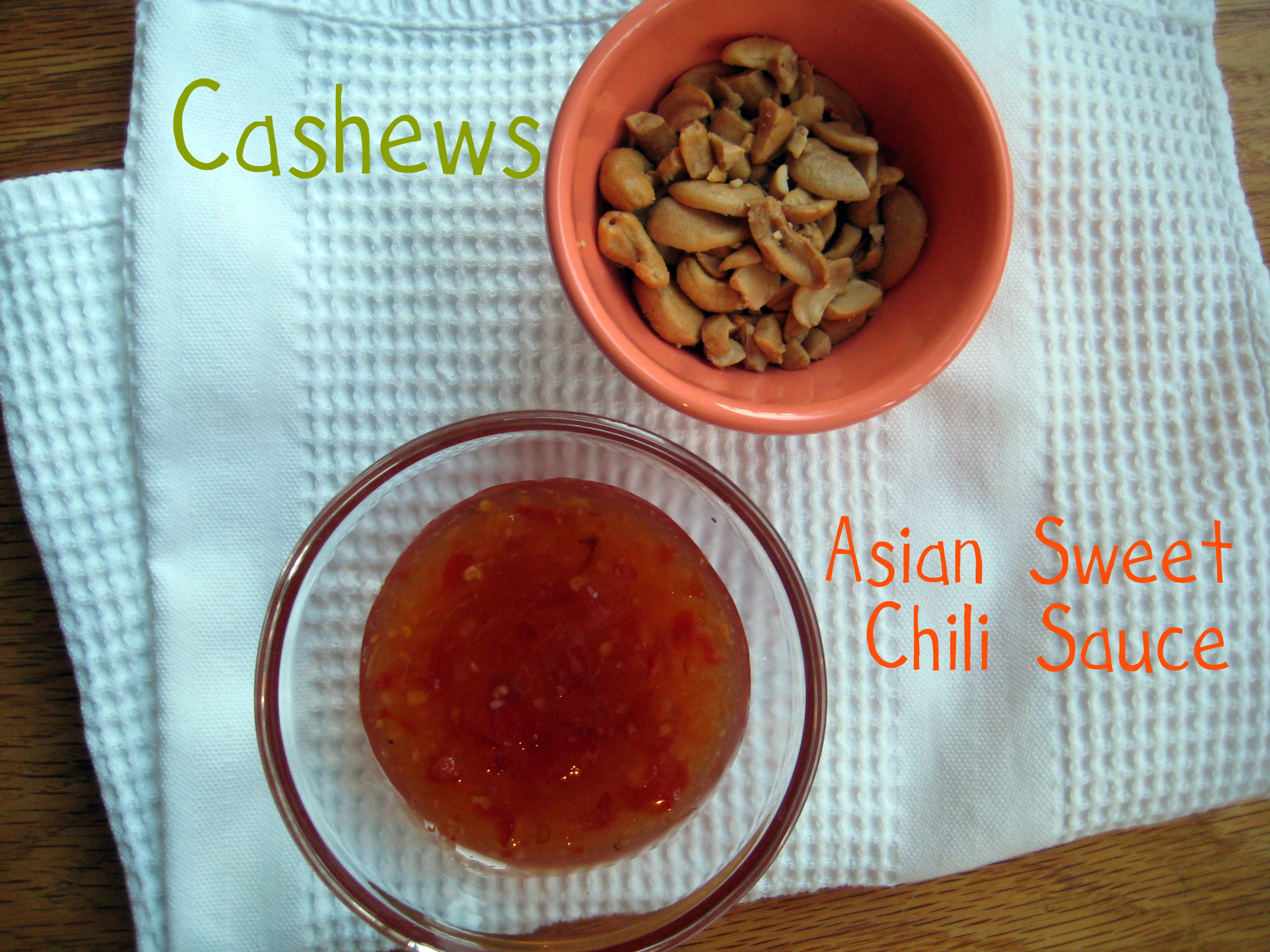 We sprinkled cashews into our wraps and dipped them into Asian Sweet Chili Sauce (most grocery stores carry this sauce. By either ethnic foods/hot sauces).