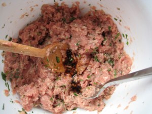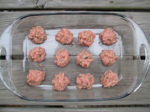 Roll them into balls O’ meat and put into a 500 degree oven for 15 minutes.