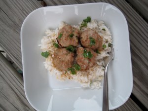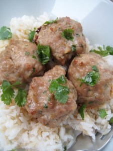 Put those meatballs over rice, top with some cilantro and spoon on a little sauce.