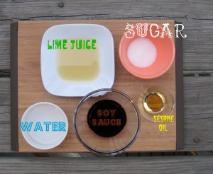 Meanwhile, stir together lime juice, water, sugar, remaining 4 tablespoons soy sauce, and remaining 2 teaspoons oil in a bowl until sugar is dissolved.