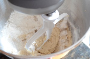 Mix in the flour, salt, powdered sugar and baking powder until well combined.