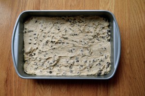 Stir in chocolate chips and then spread batter into the baking dish and bake for 25-30 minutes