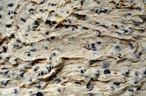 You combine some butter, sugar, flour, baking powder, powdered sugar, salt and choc. chips.