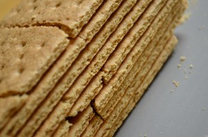 While it’s baking, crush up some graham crackers and add some melted butter to those.
