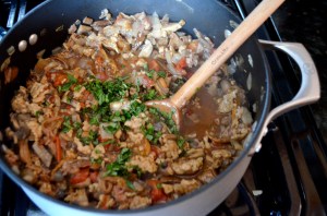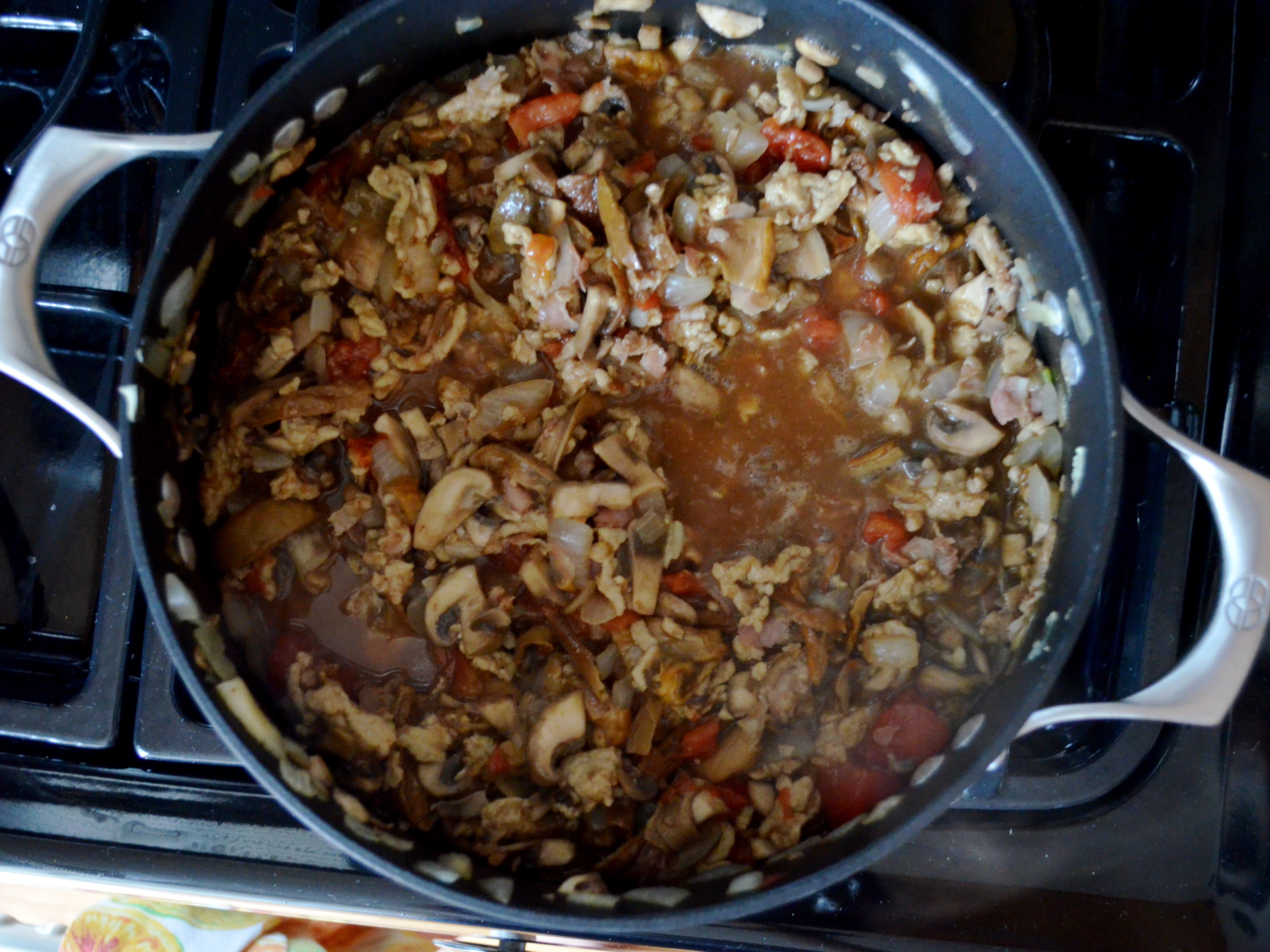 Pour in the tomatoes, cover, and simmer for 20 minutes.