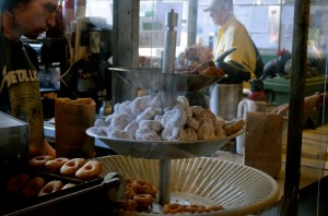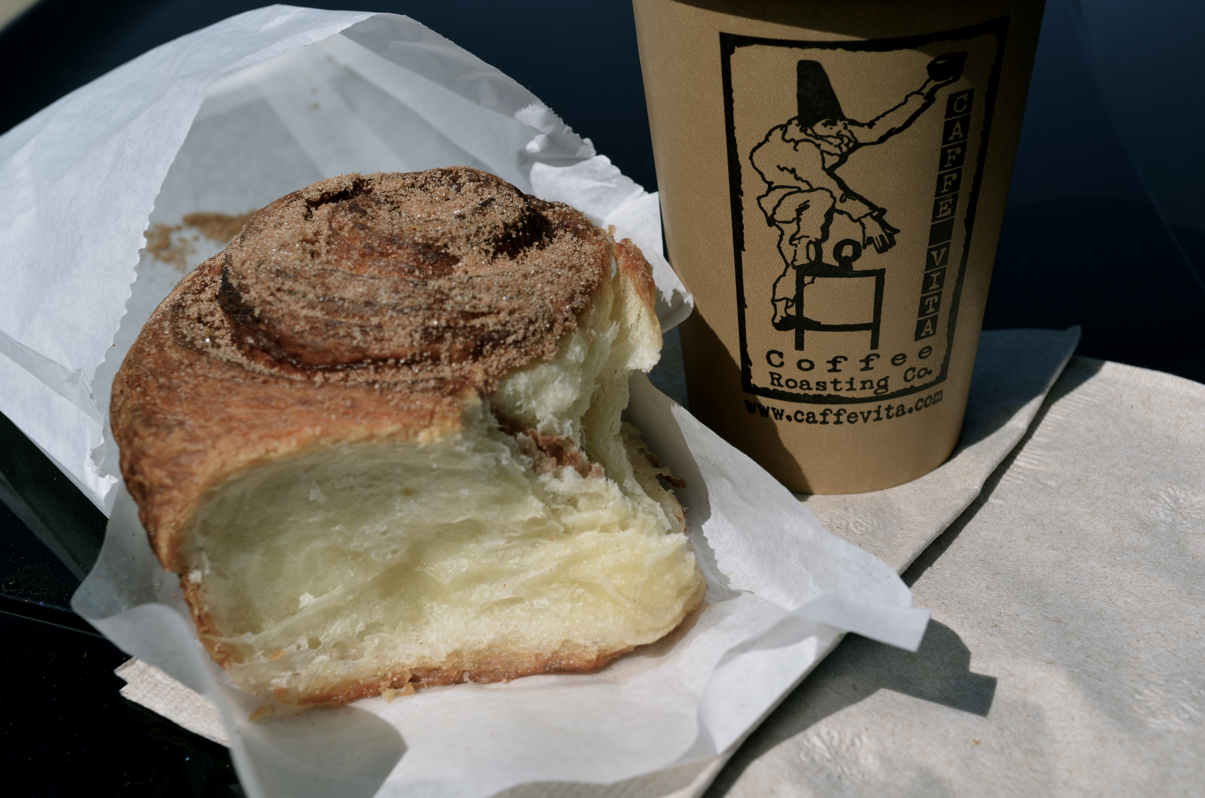 They had a million varieties (I would have gotten peanut butter but wanted Mikey to eat half) and we chose White Chocolate Raspberry.
