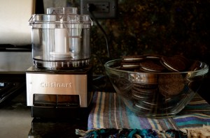 Crush 45 Oreo cookies in a food processor until they are a crumb consistency.