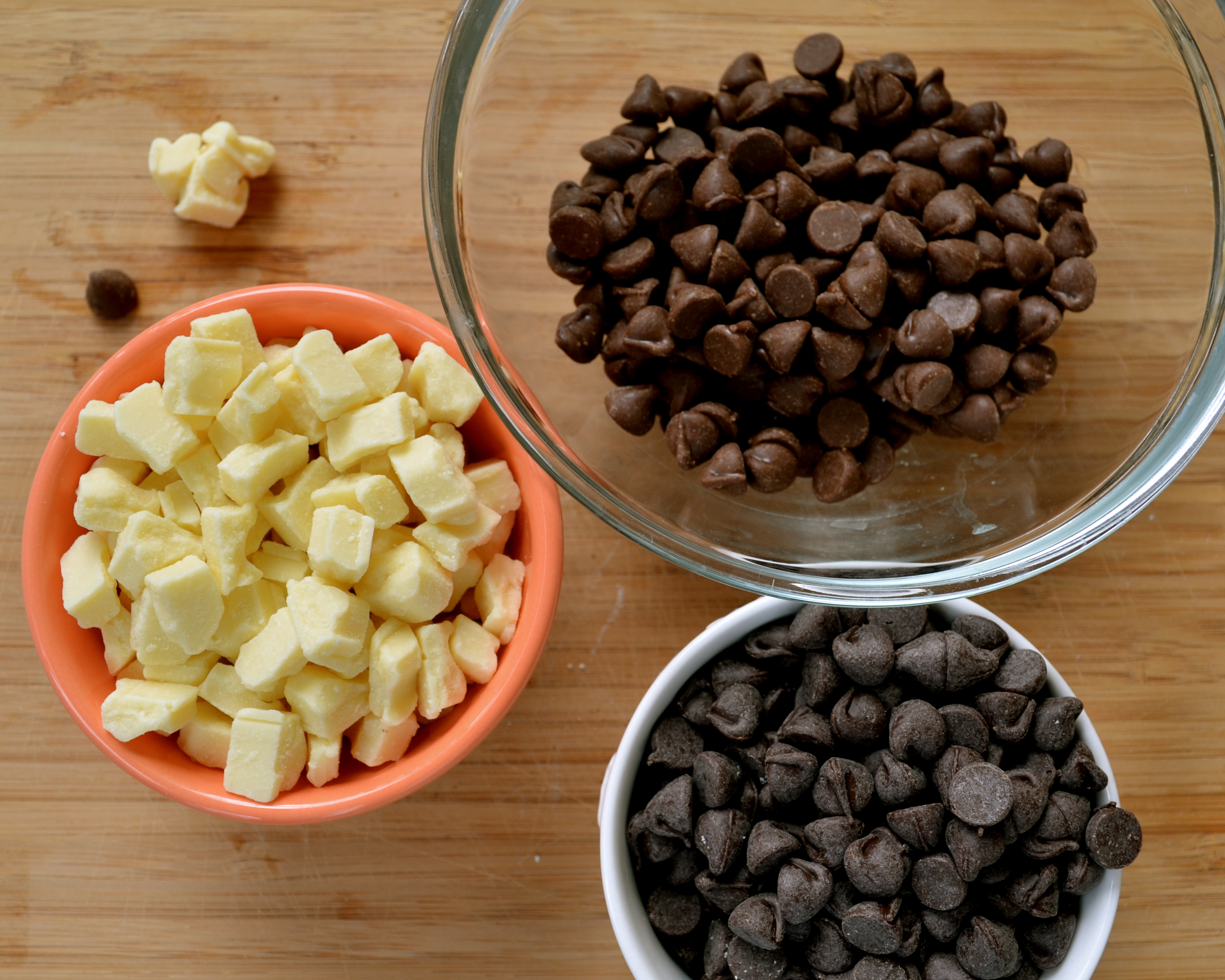 Add some white, milk and semi sweet chocolate…