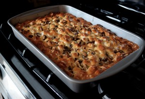 Place into a 350 degree oven for about 30 minutes until the top is golden brown and it is a bit bubbly.