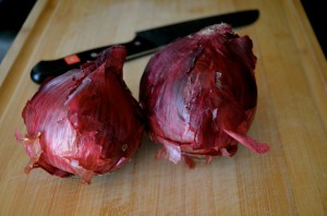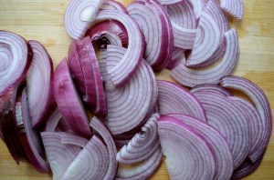 2 Medium Red Onions, peeled, halved and sliced