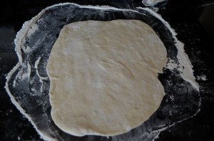 Roll out your dough into a desired size and shape on a generously floured surface.