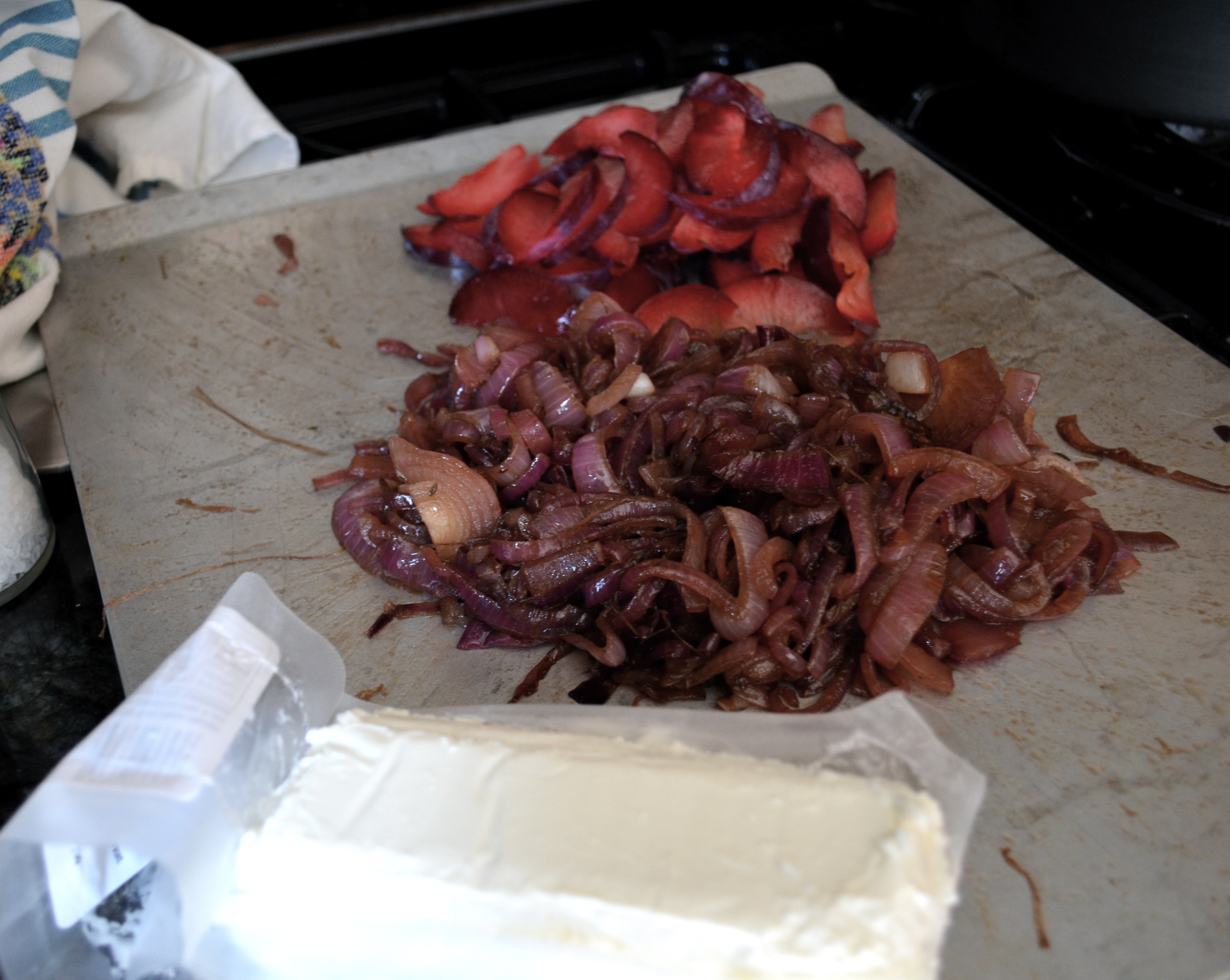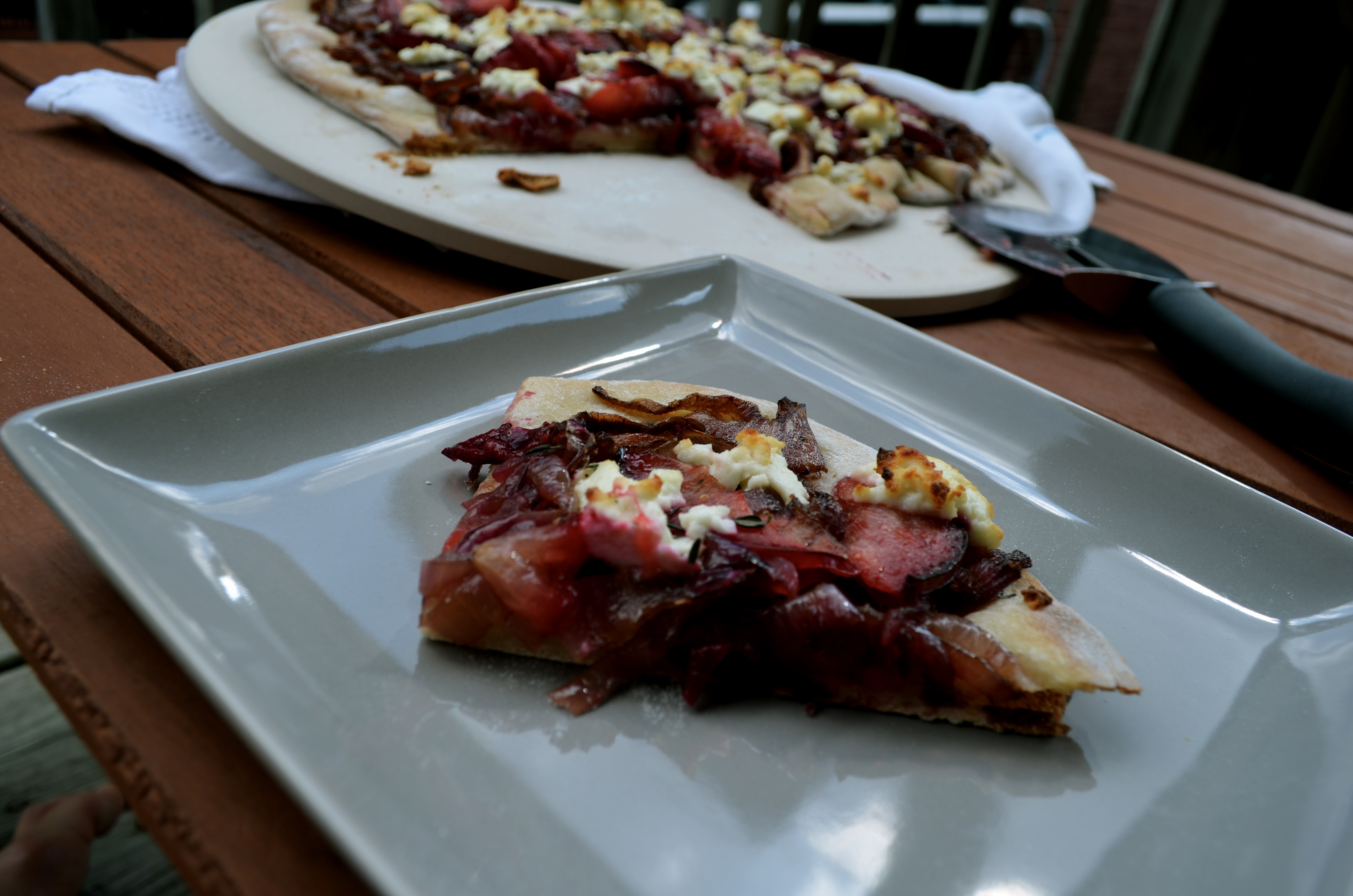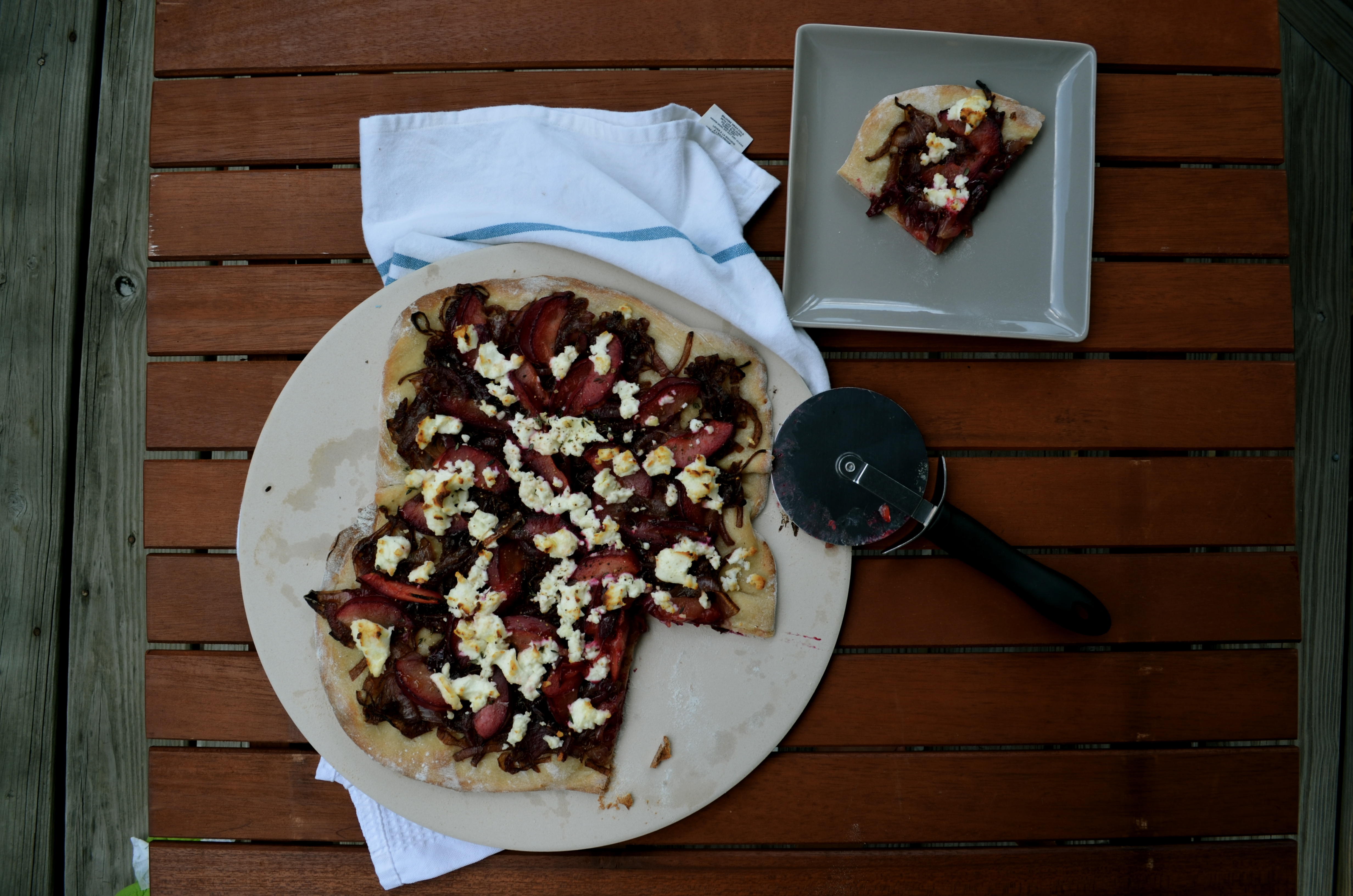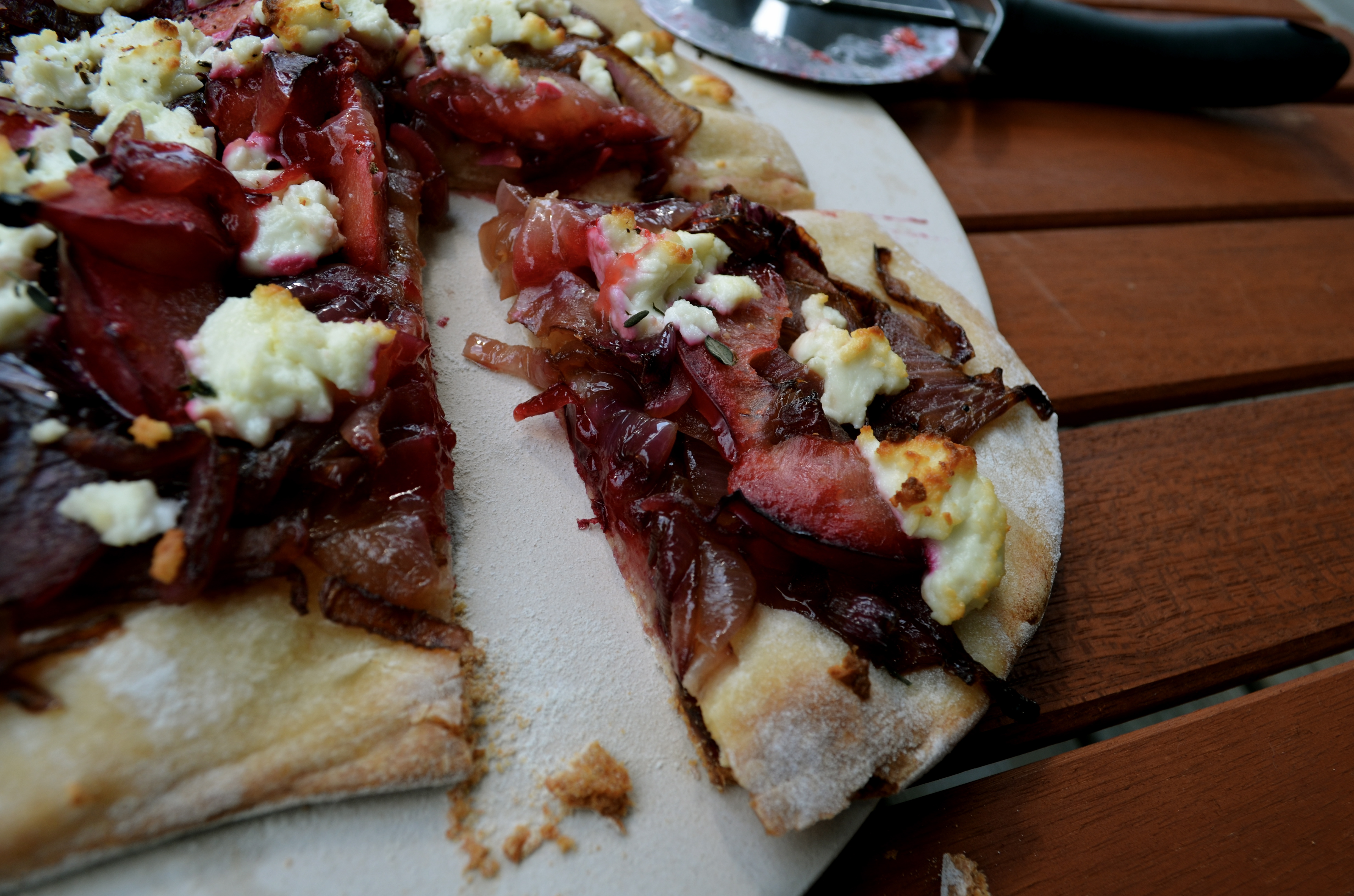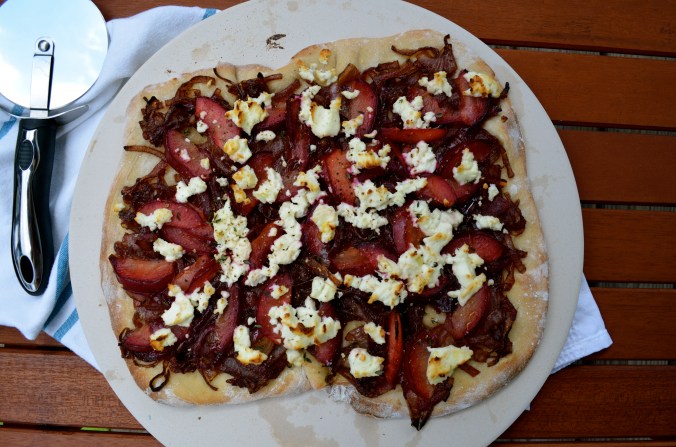 Recipe: Plum caramelized onion goat cheese flatbread