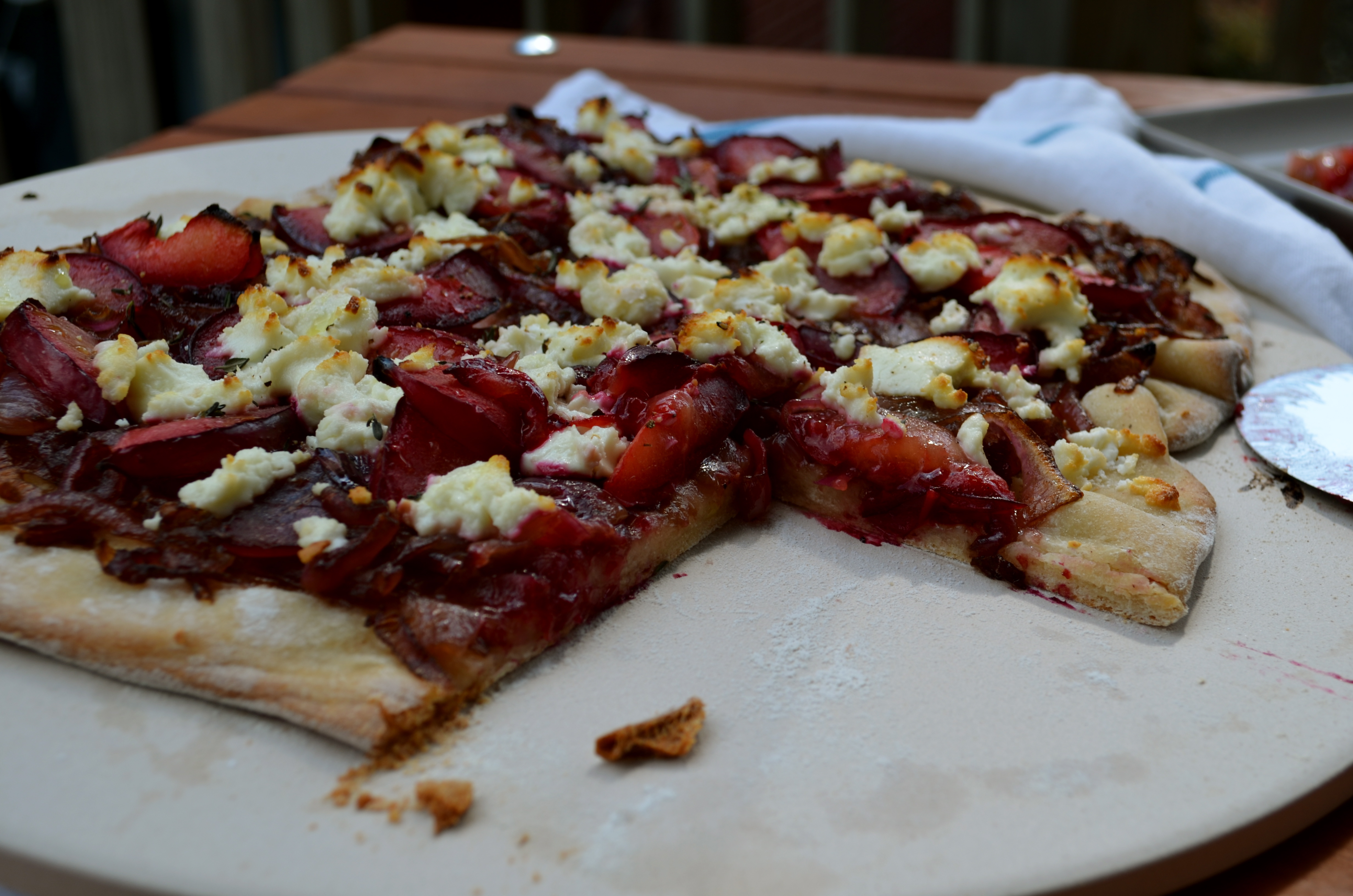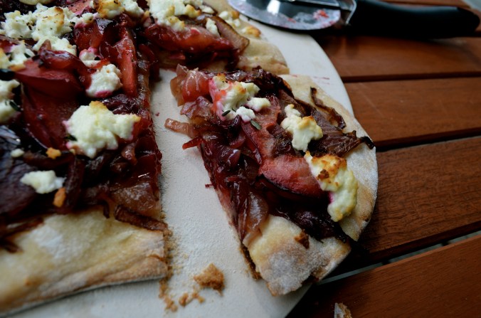 3 thoughts on “Plum Caramelized Onion and Goat Cheese Flatbread