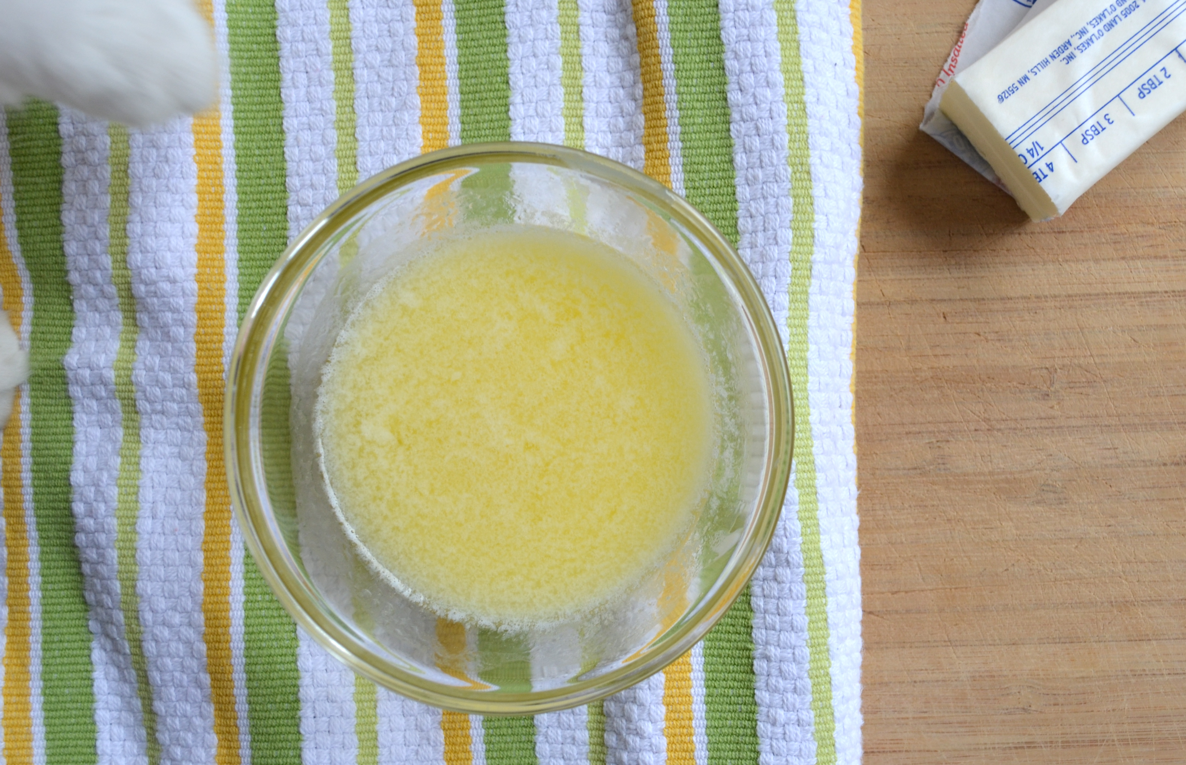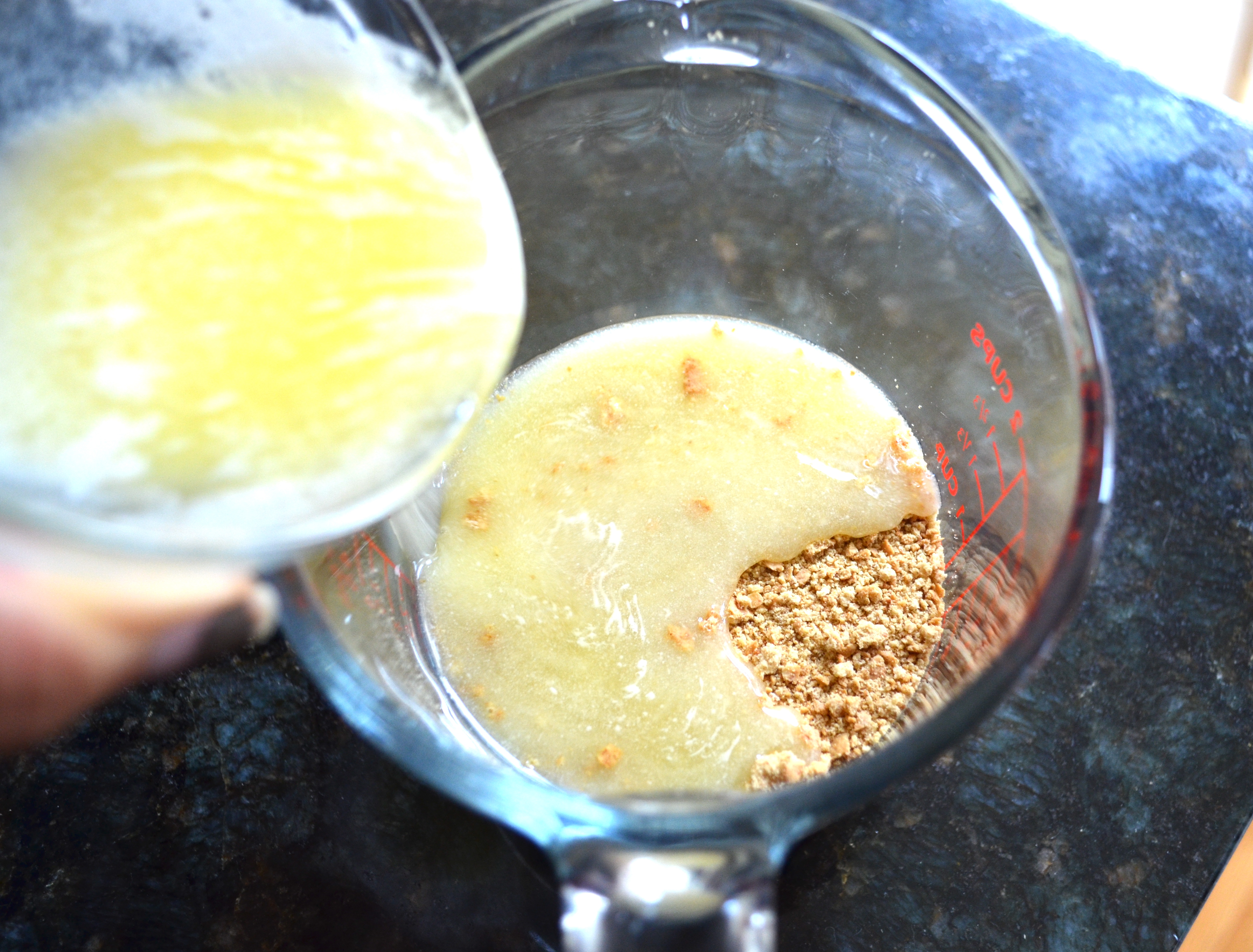 Melt butter in a microwave safe bowl and add to graham crackers.