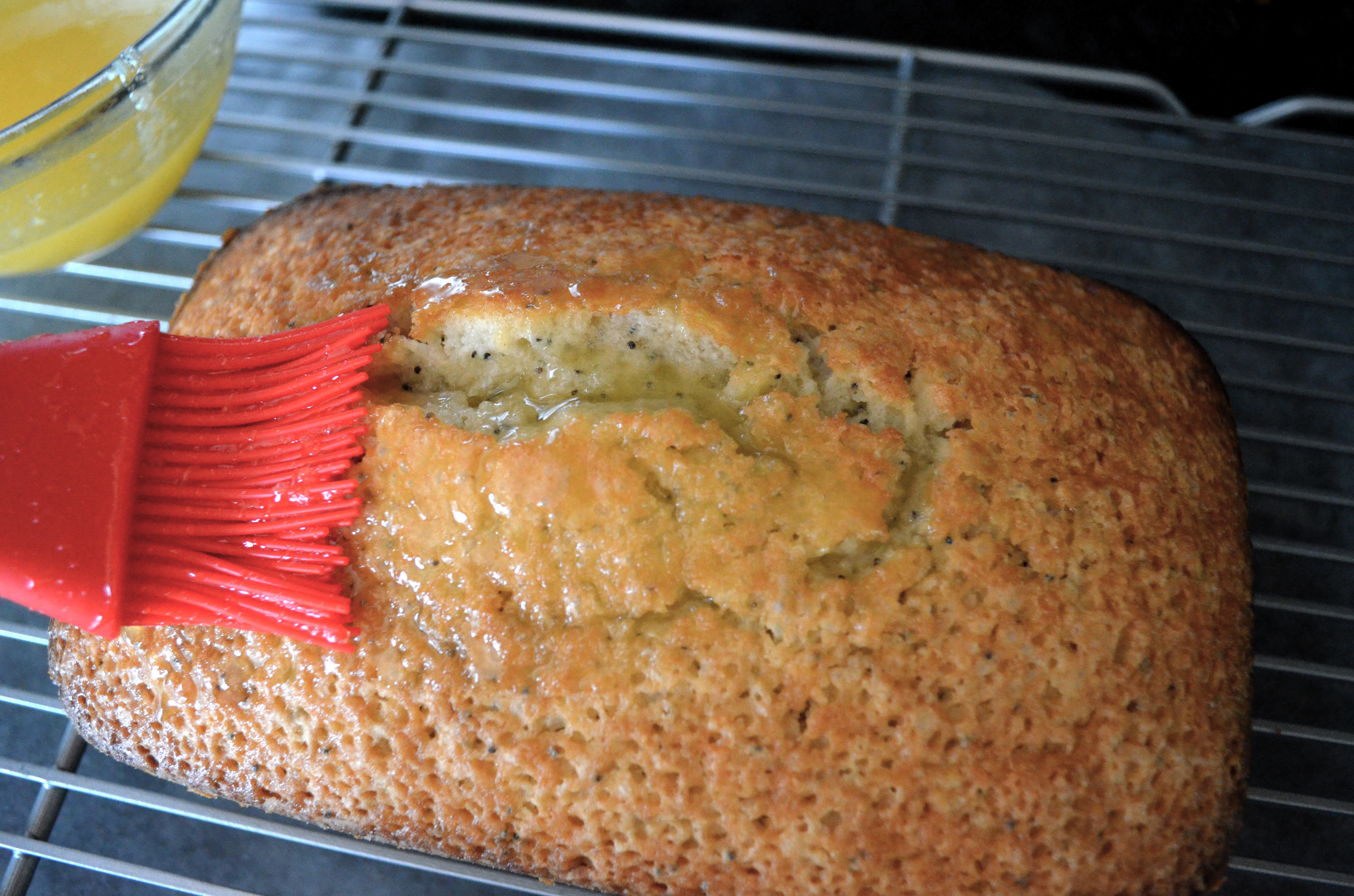 Using a brush, spread glaze evenly over the top of the bread.