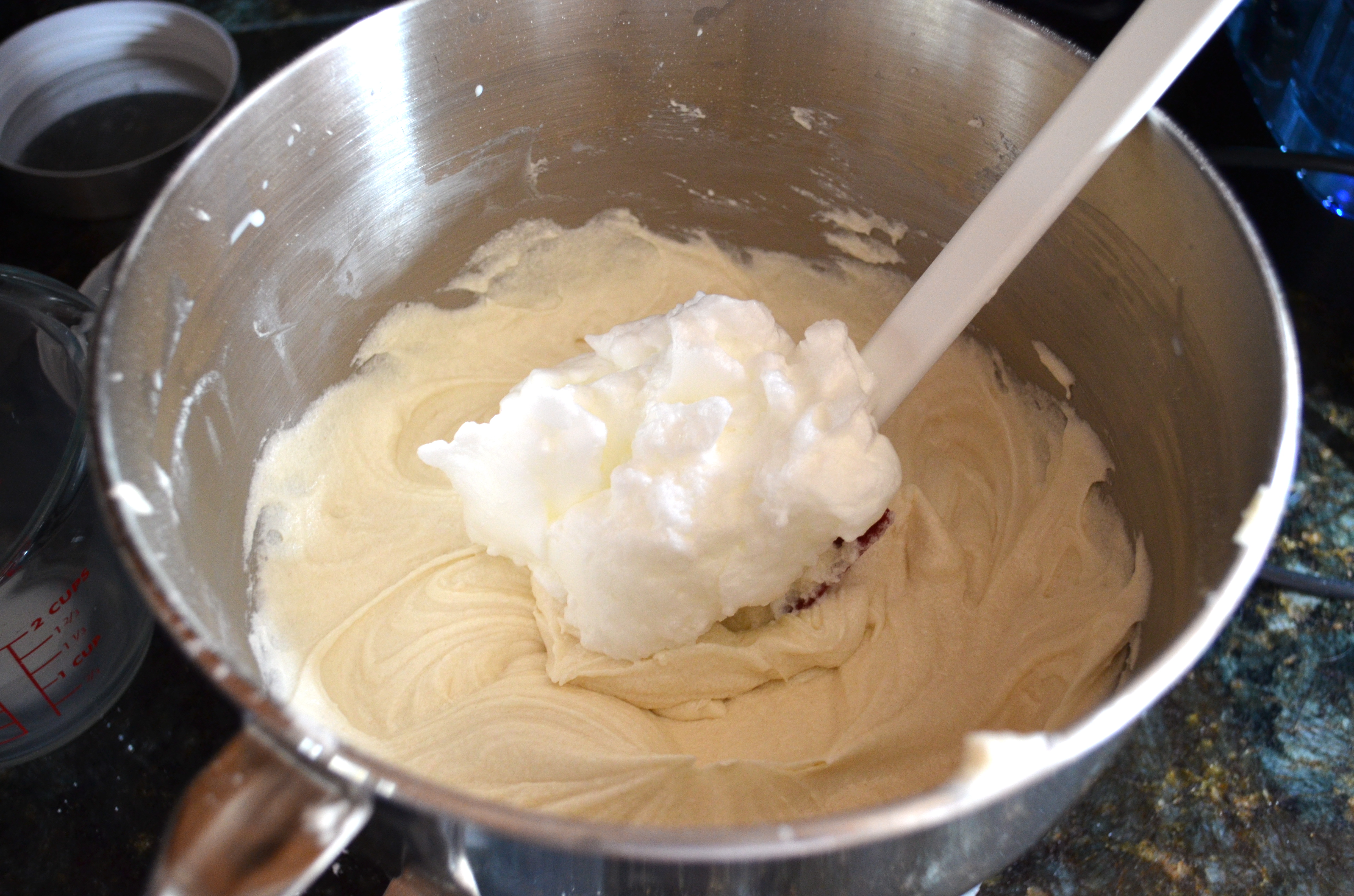 Don’t overbeat. Fold in beaten egg whites with a rubber spatula.
