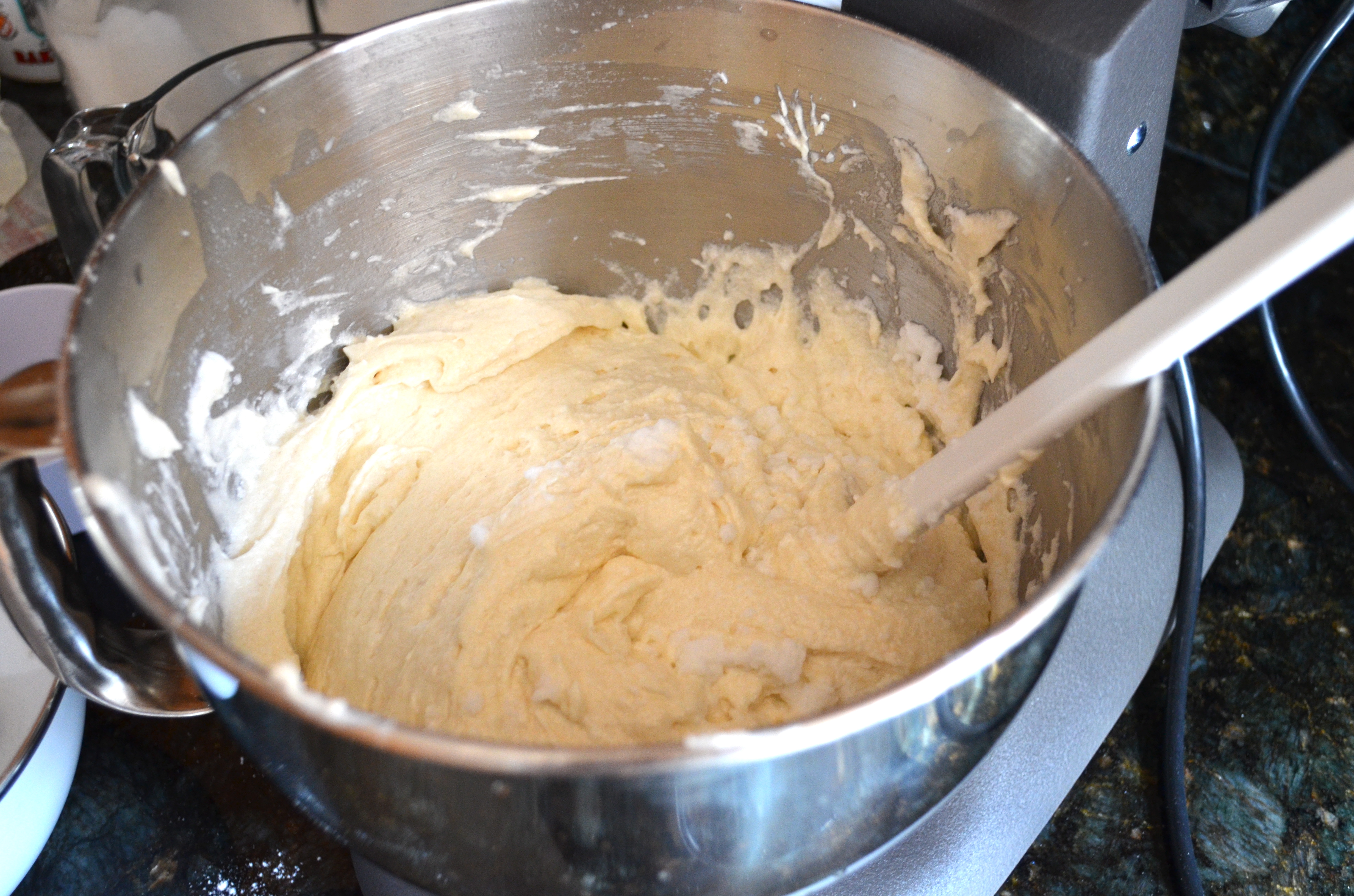 Once butter and sugar are completely combined, alternately add the flour mixture and the milk.