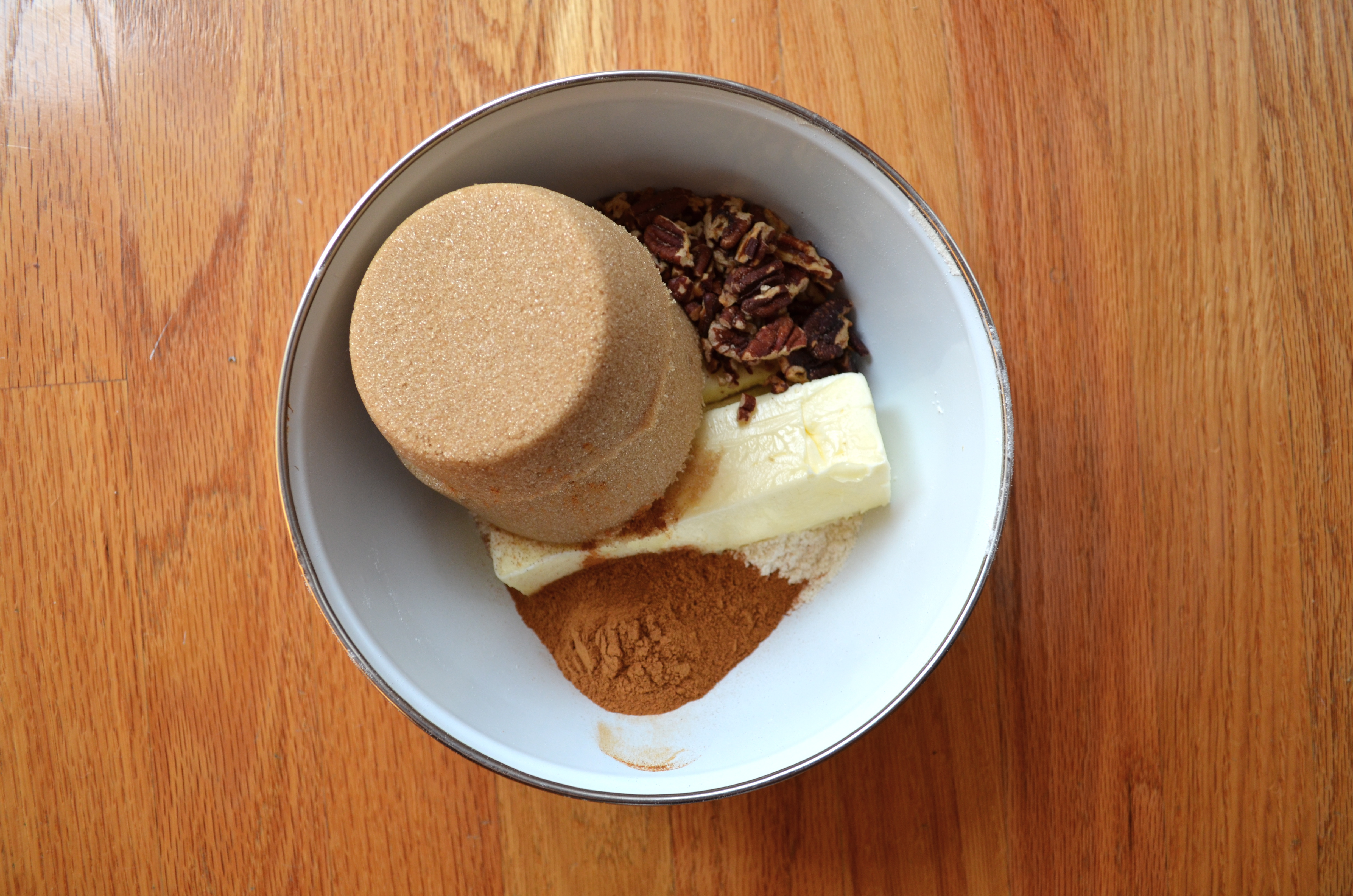 In a separate bowl, combine topping ingredients with a pastry cutter until crumbly.