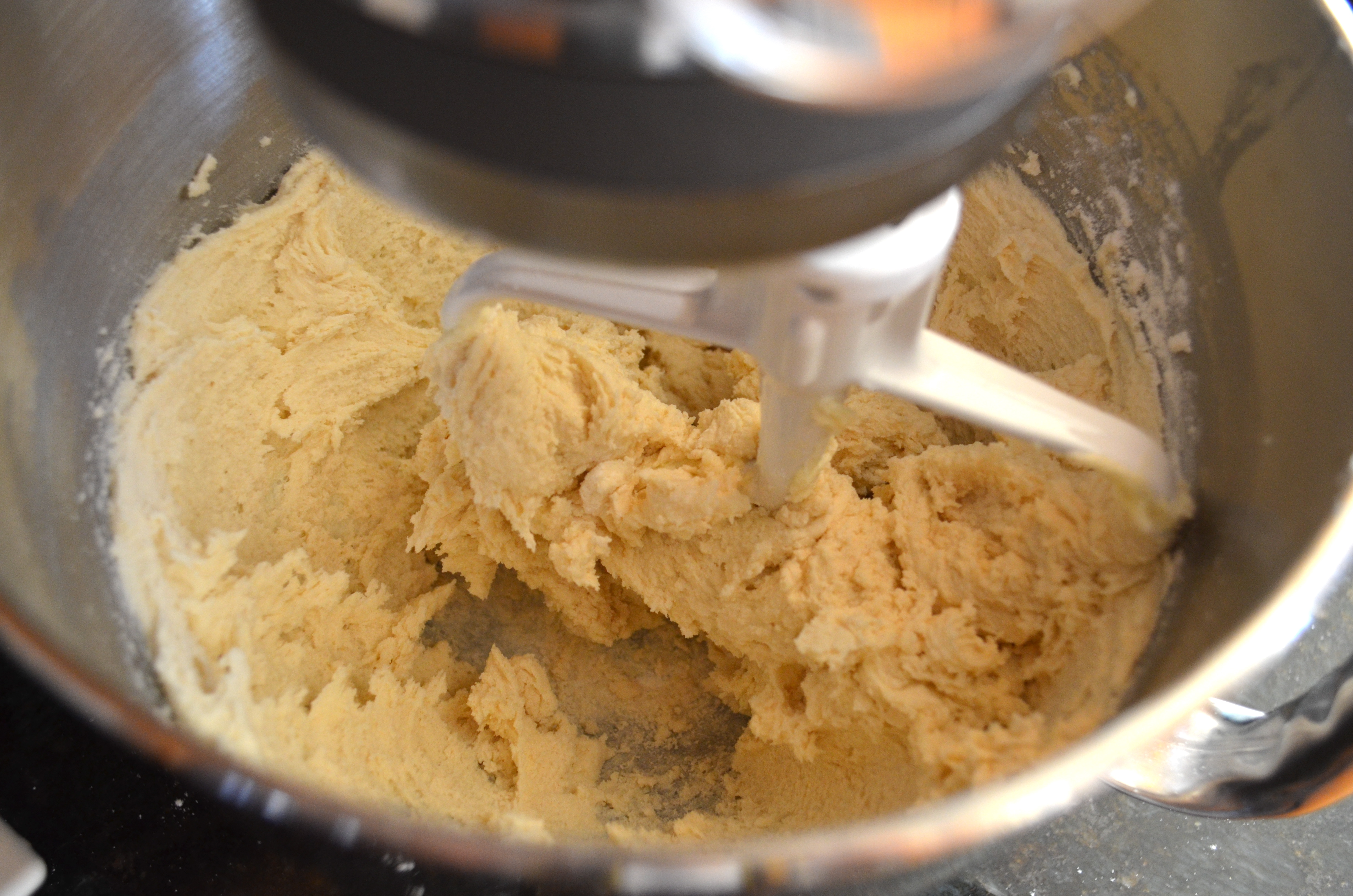 In a stand mixer, combine the butter and sugar and beat on high until well incorporated. Add flour, a little at a time, mixing well until combined.