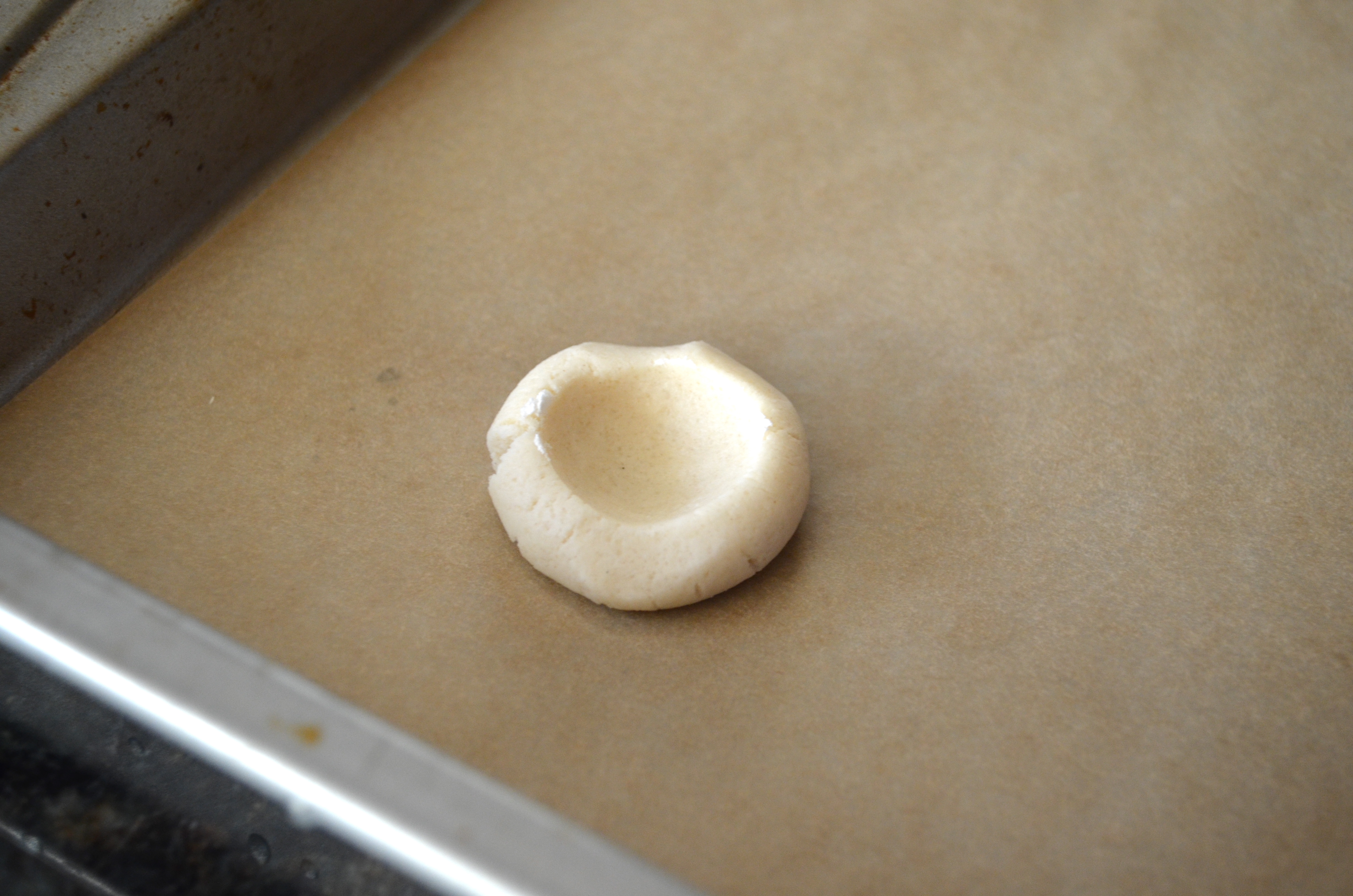 Push the spoon into the ball in order to create the “thumbprint”.