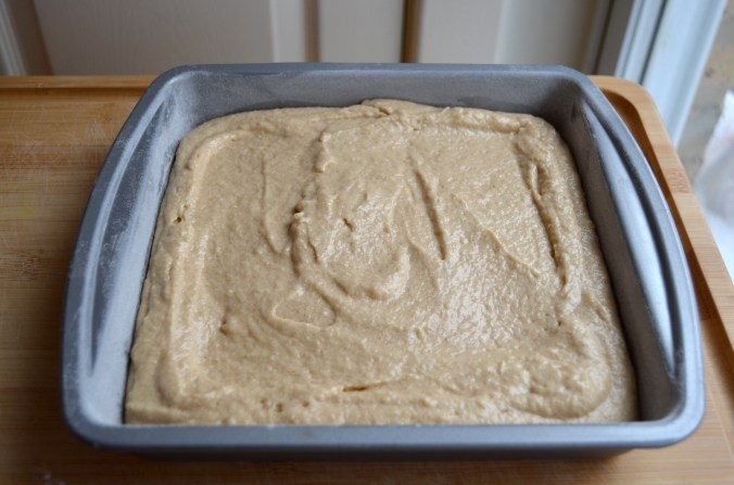 Transfer batter to prepared pan and put into preheated oven for 35-40 minutes, or until a toothpick inserted into the center of the cake comes out clean.