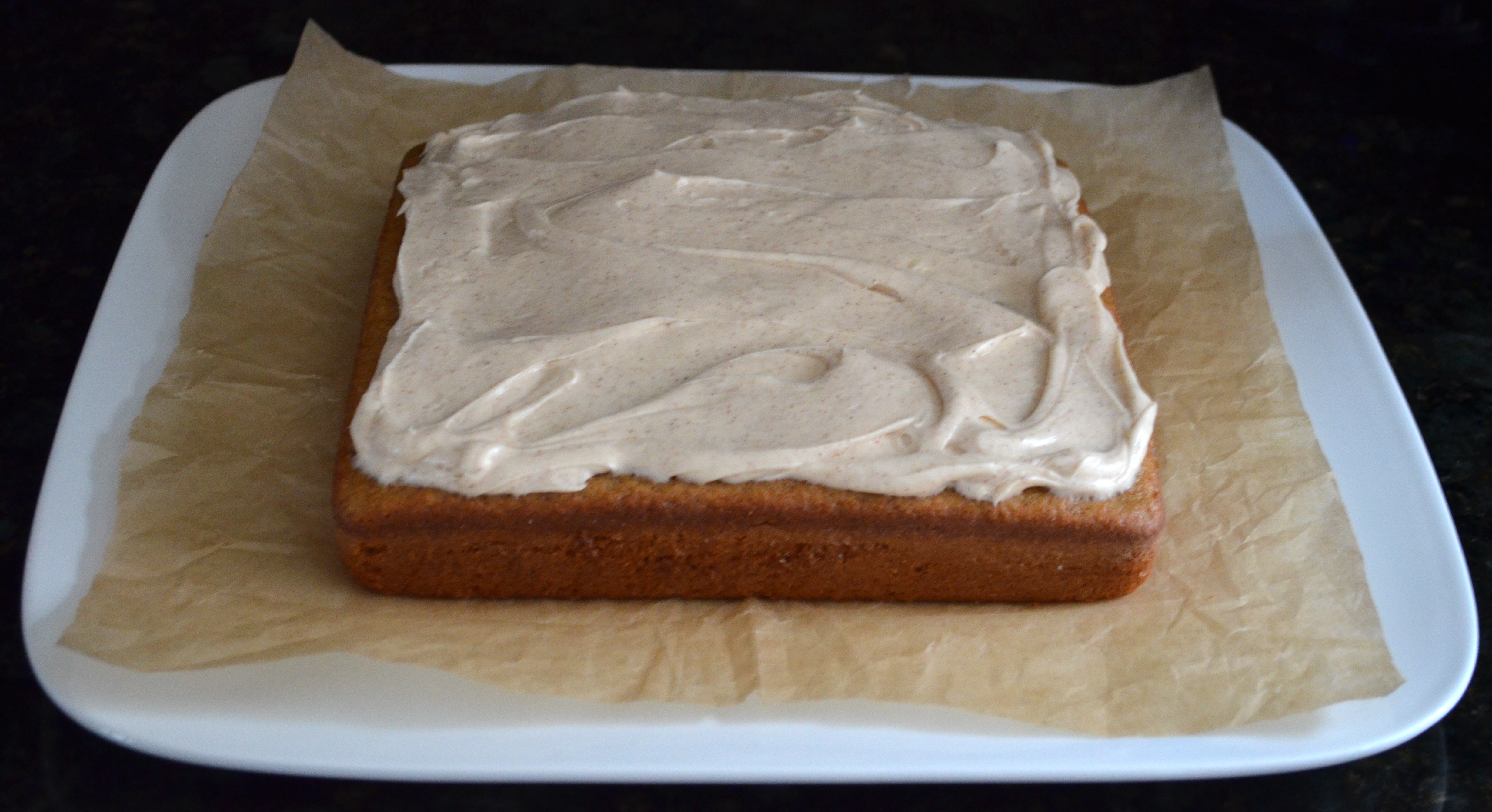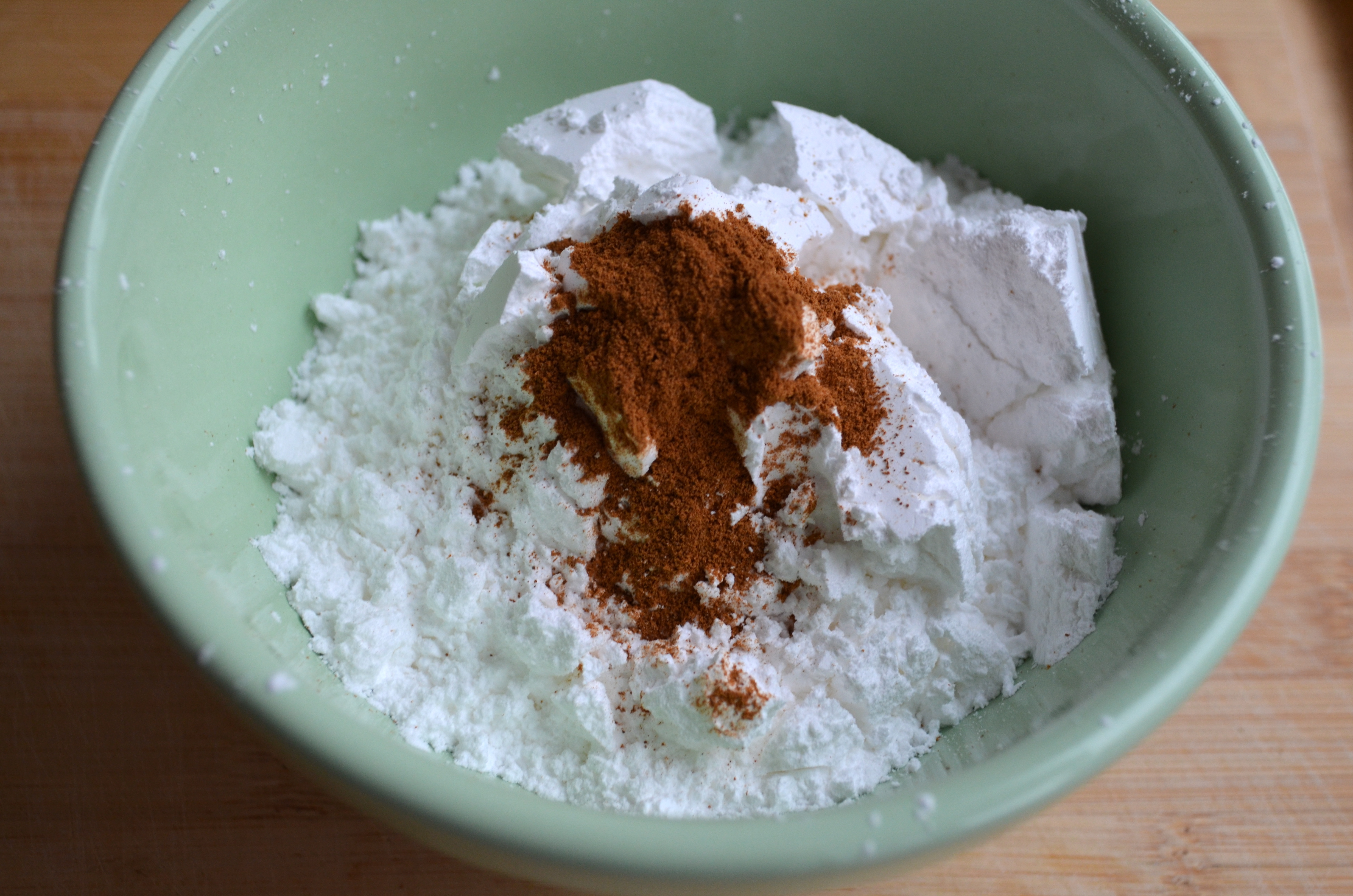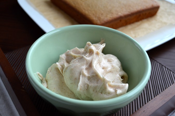 For the frosting, beat cream cheese, butter and vanilla with an electric mixter until fluffy. Sift confectioners sugar and cinnamon over cream cheese mixer, slowly mixing until well combined.