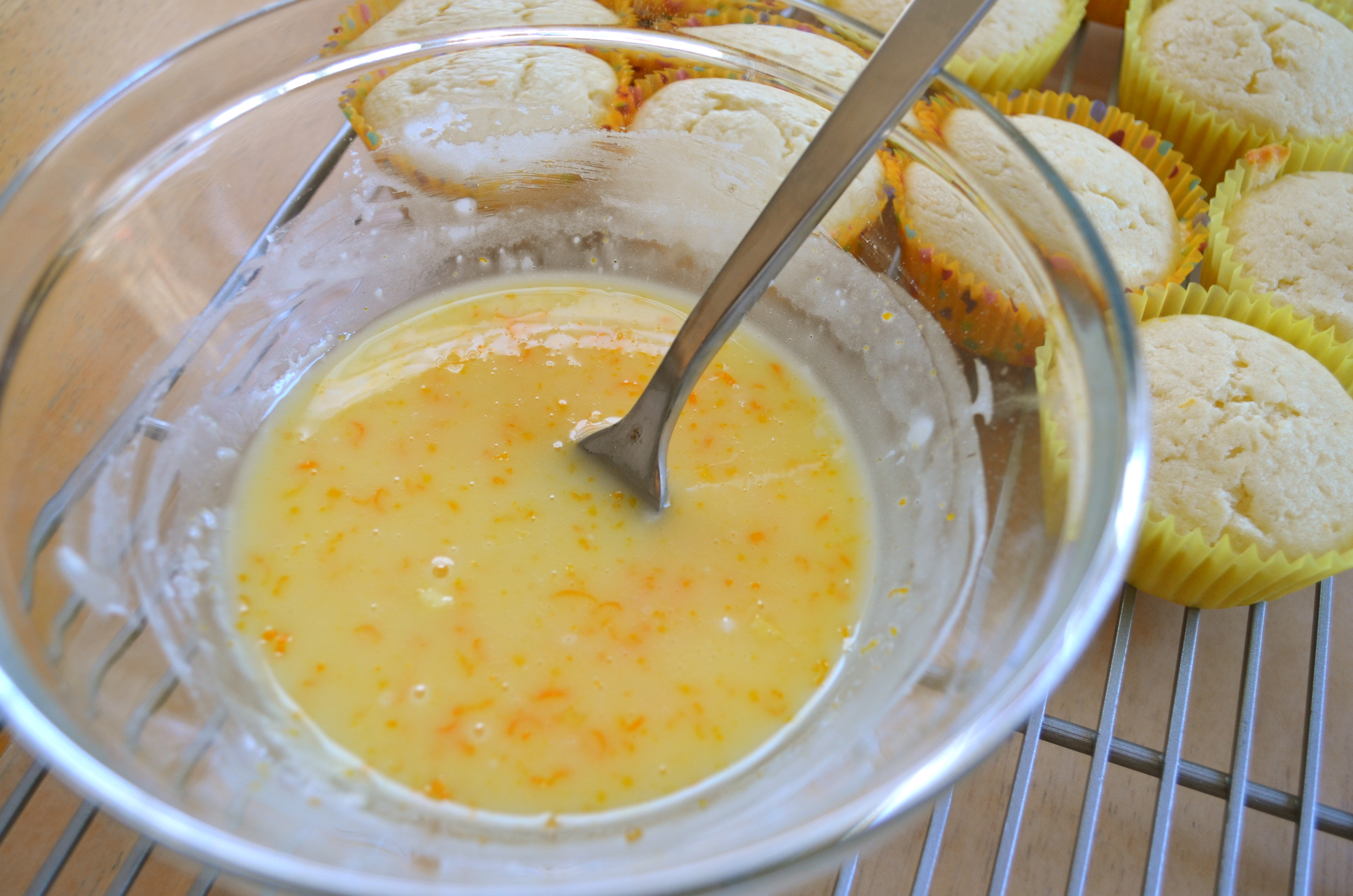 While the muffins are baking, make the glaze.