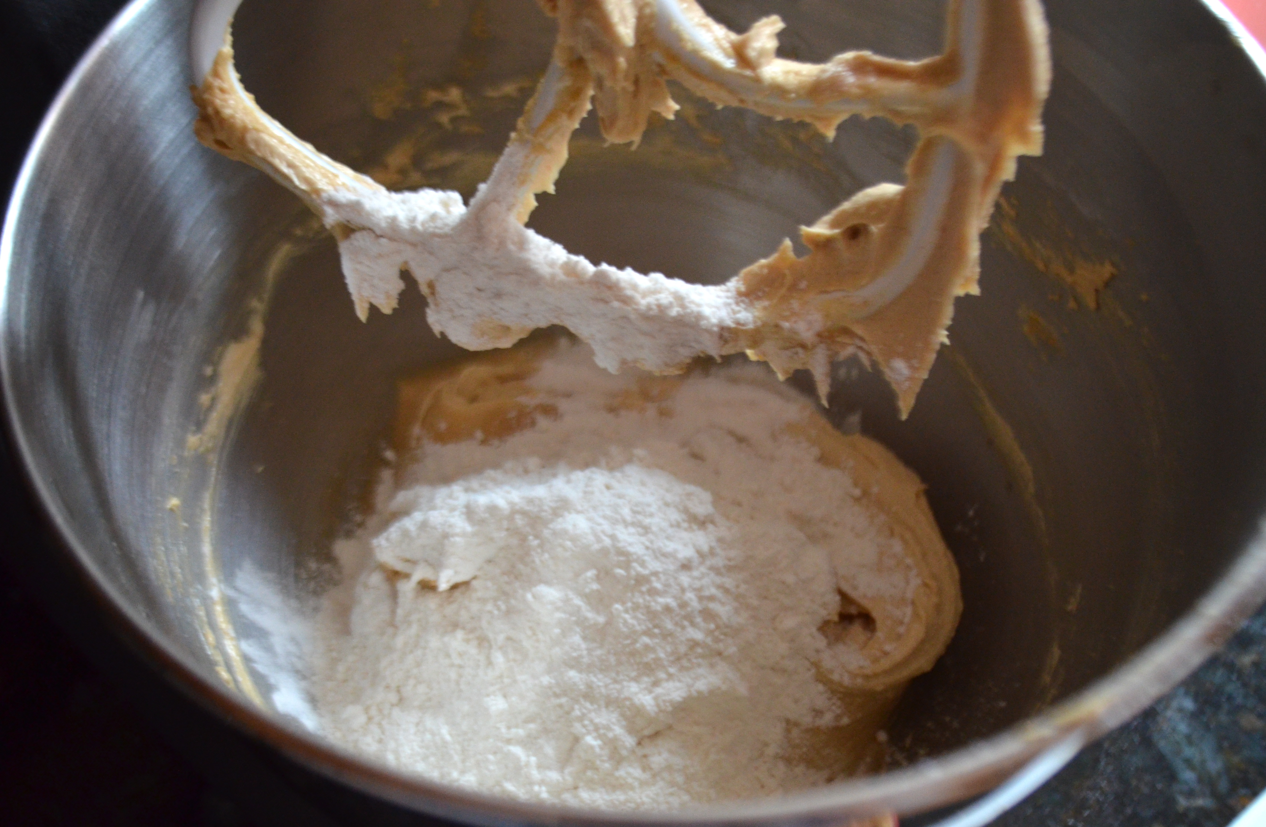 Add flour mixture to creamed batter and mix until well combined.