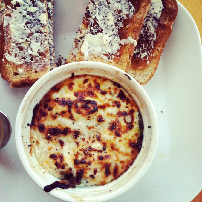 You could also do a baked egg on top of left over pasta, or with basil, tomato and mozzarella cheese.