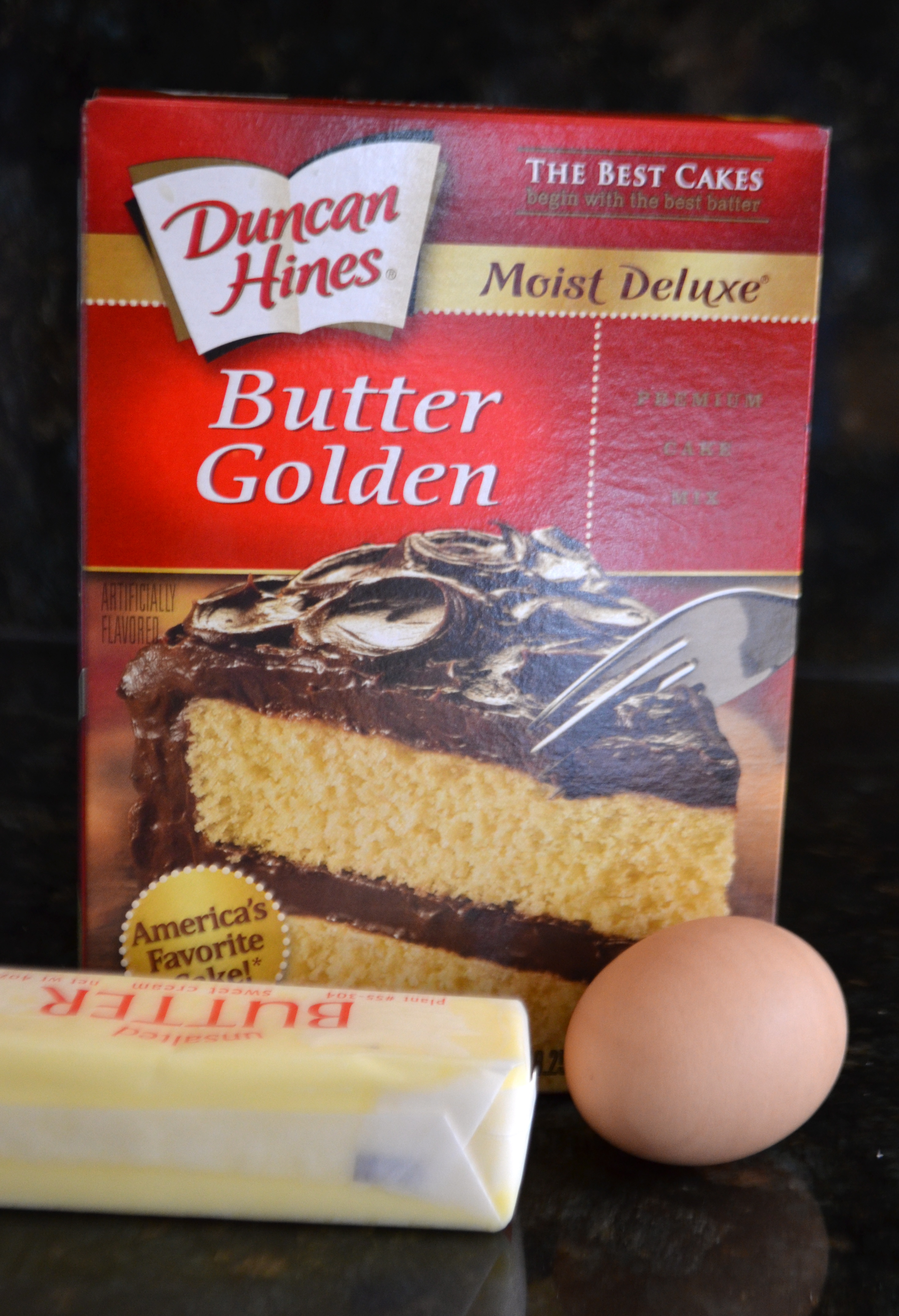 In a medium bowl, combine cake mix, egg and butter. Mix well until a firm dough forms. Take half the dough and press firmly into the bottom of the pan.