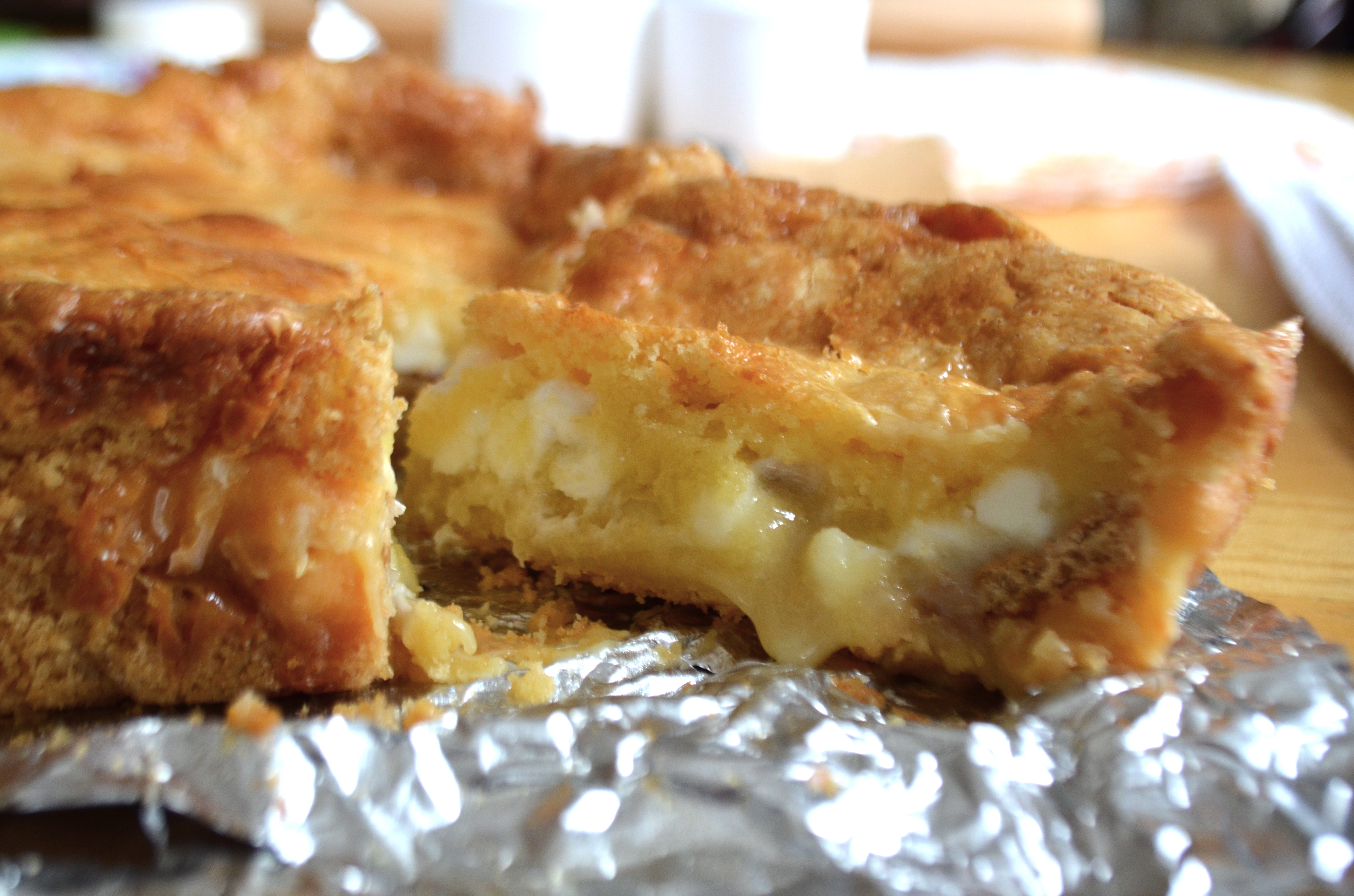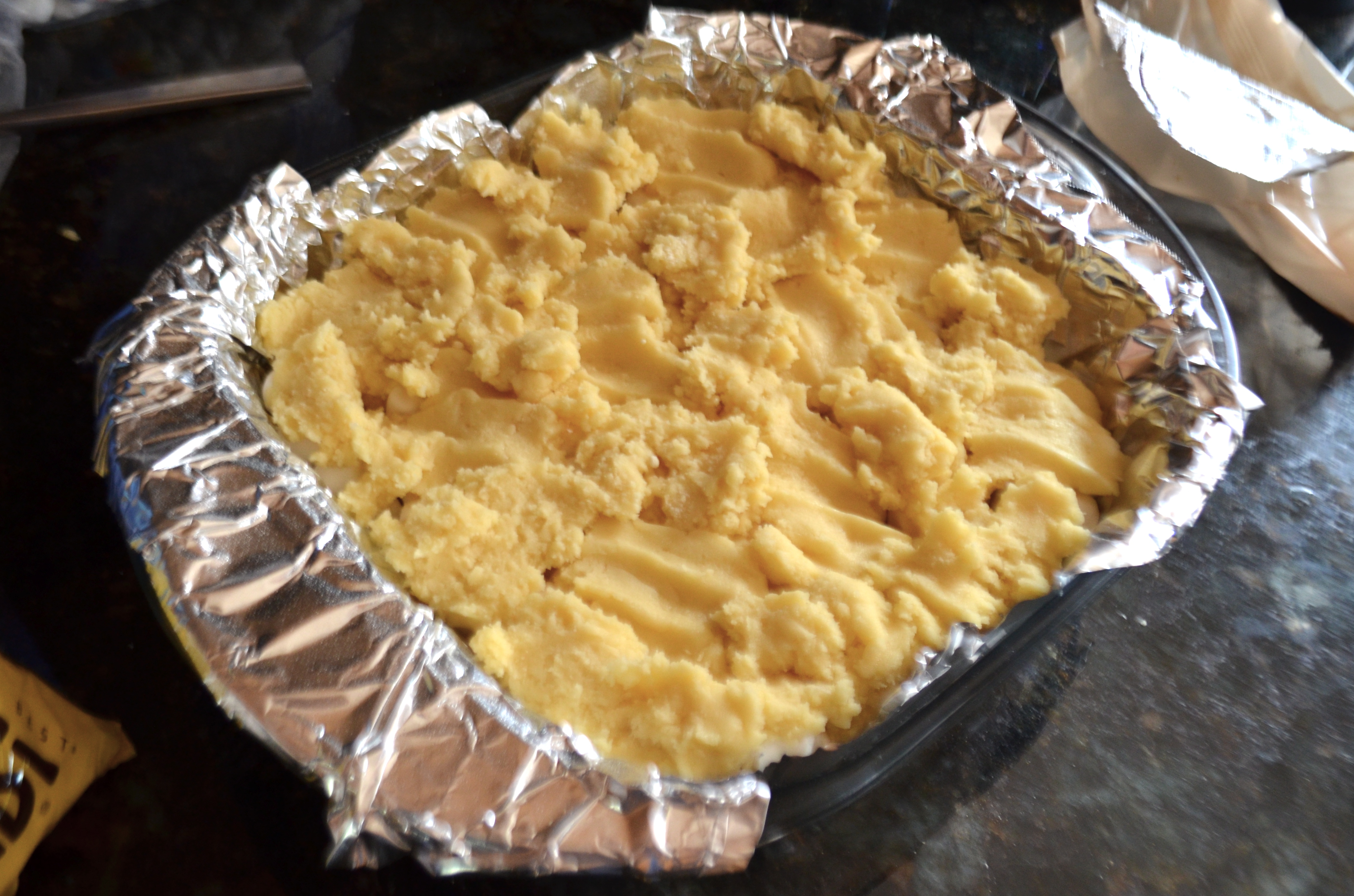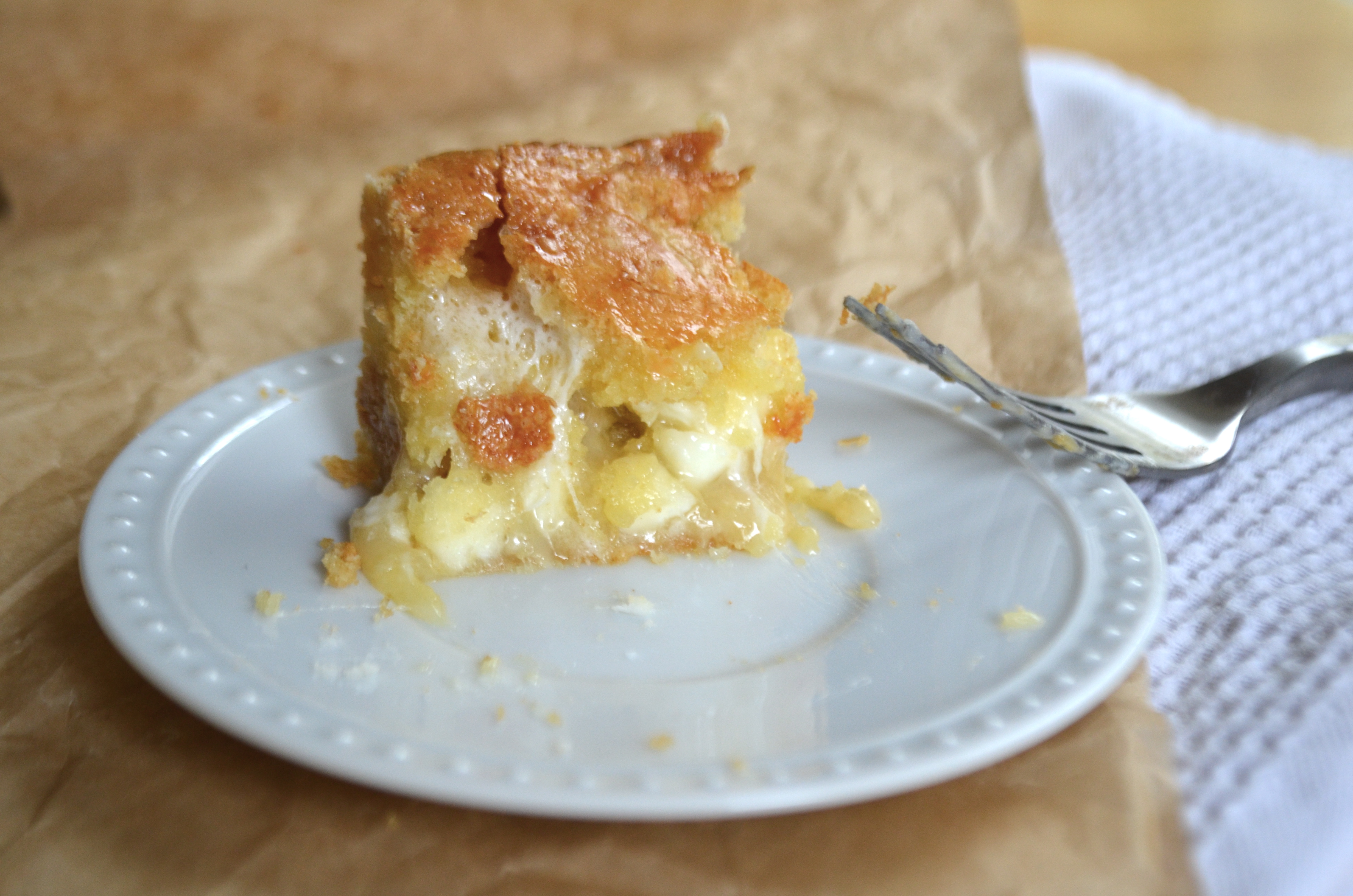 Cover that with the remaining dough, covering as well as you can and pressing to an even layer. Finally cover that with the sweetened condensed milk and place into oven for about 30 minutes.