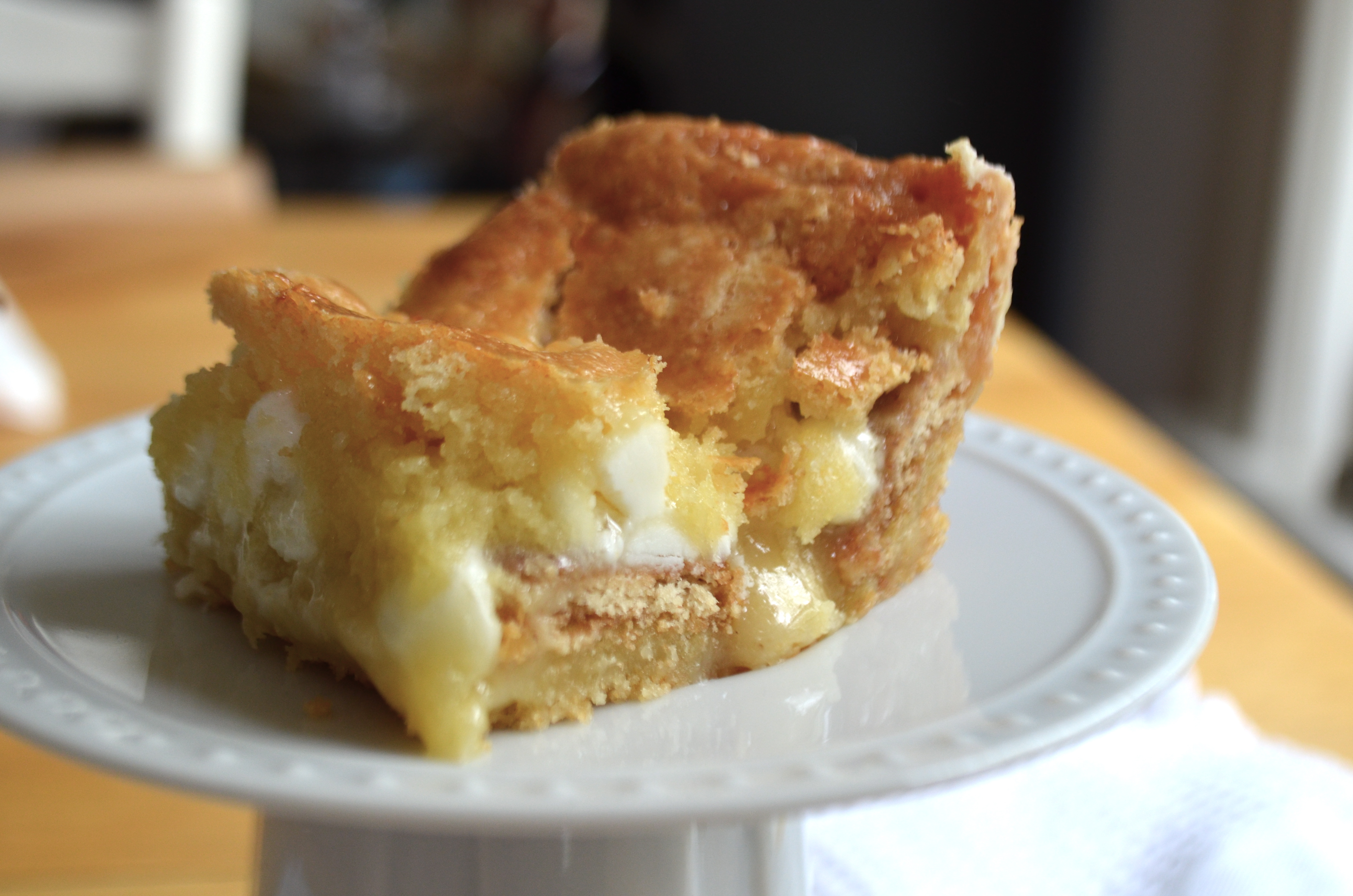 Marshmallows, graham crackers, white chocolate, yellow cake mix…