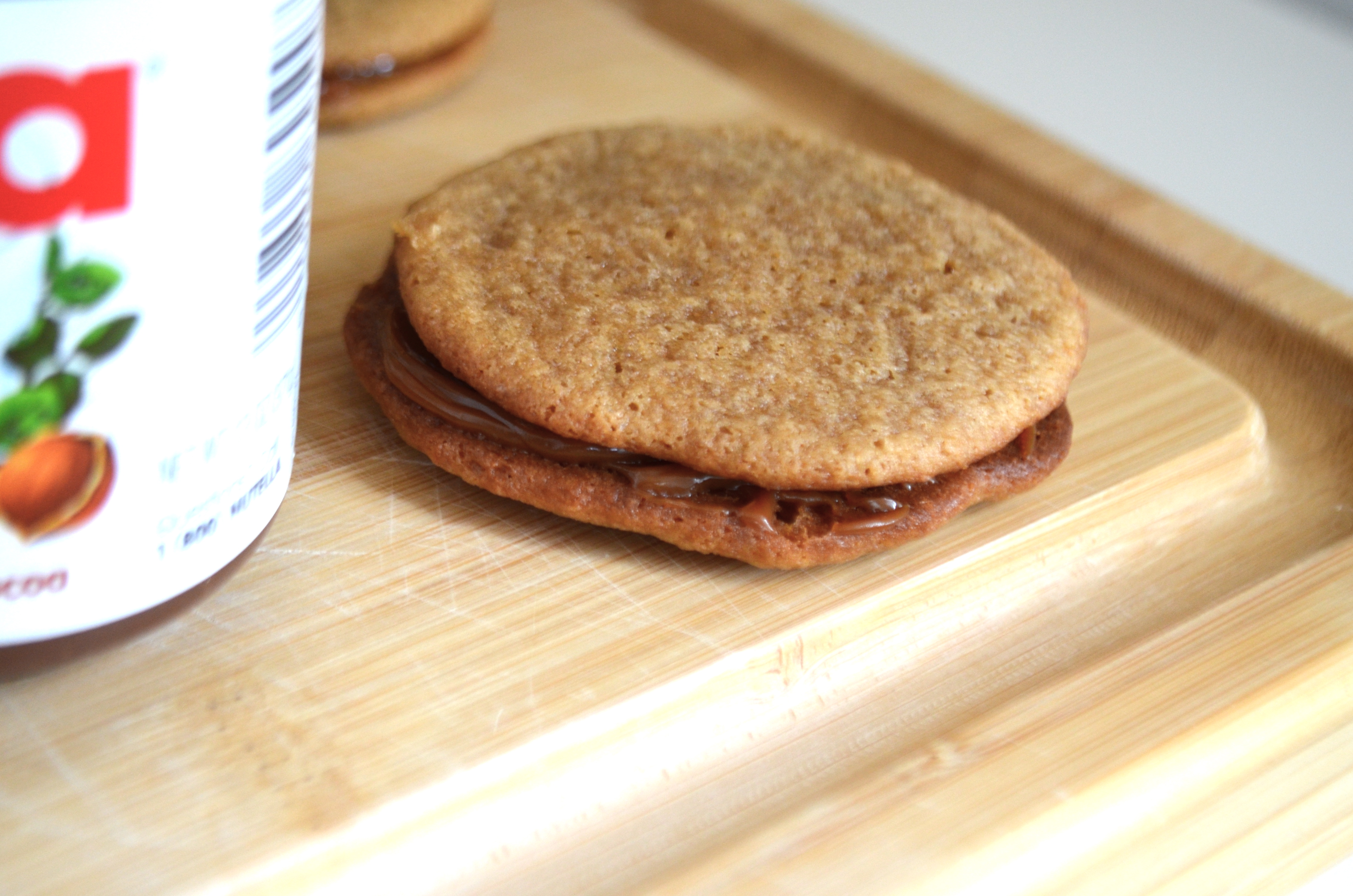 I would recommend you add some kosher salt on top and call them salted caramel cookies instead. Even if you use Nutella, I recommend a hint of salt just because the cookie itself is very sweet!