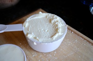 Add the white chocolate, ricotta and heavy cream at the same time and stir them as best you can, switching over to your hands and gently kneading until the dough is an even mass.