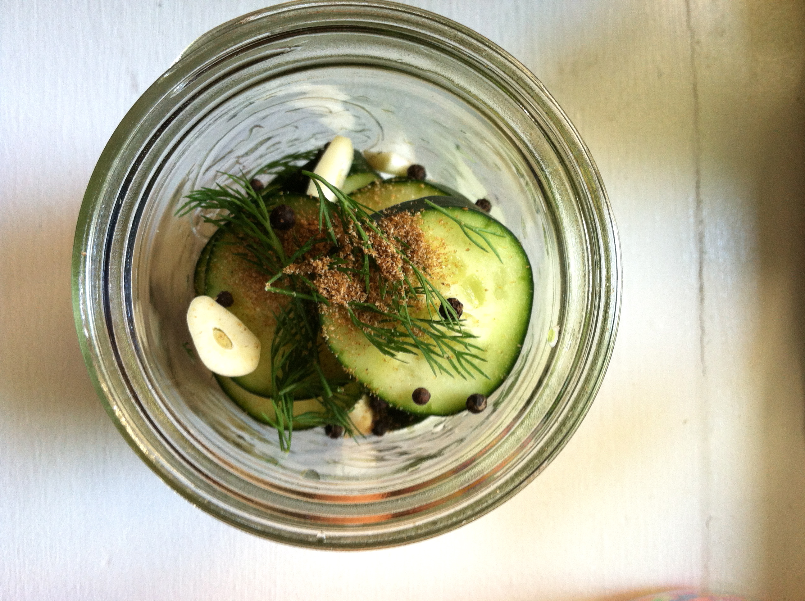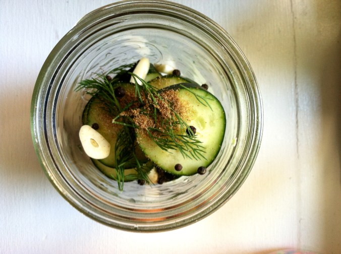 Our first bushel included a ton of fresh dill, so pickles were an obvious choice.