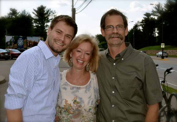And here is my Dad, in present time…still sporting his fantastic ‘stache.  (plus my beautiful Mom and less beautiful brother, Brad).