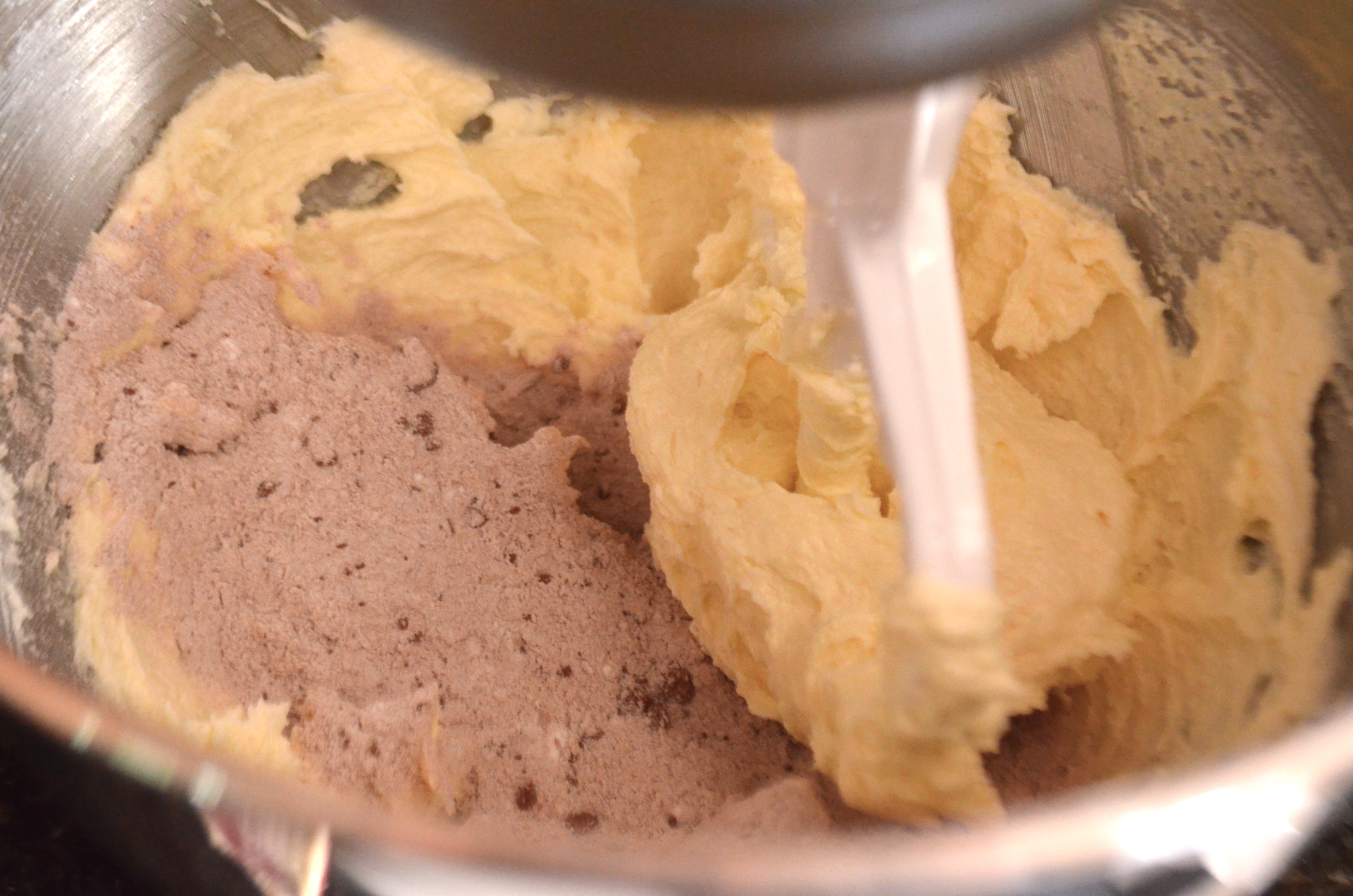Add flour mixture to batter in three additions, mixing well after each addition but only mixing until just combined. Try not to over-mix.