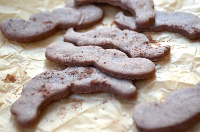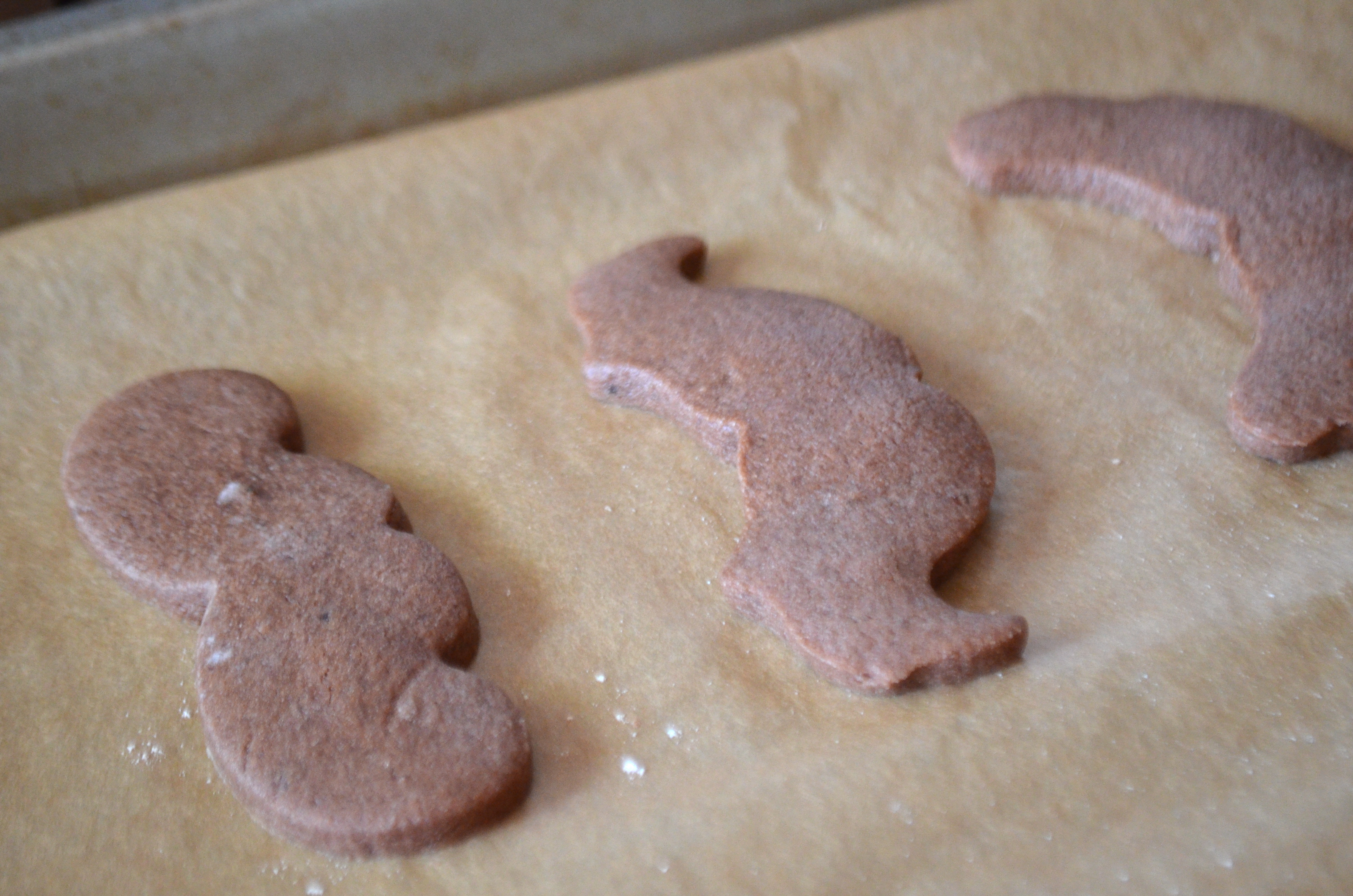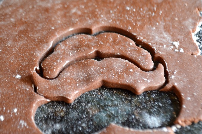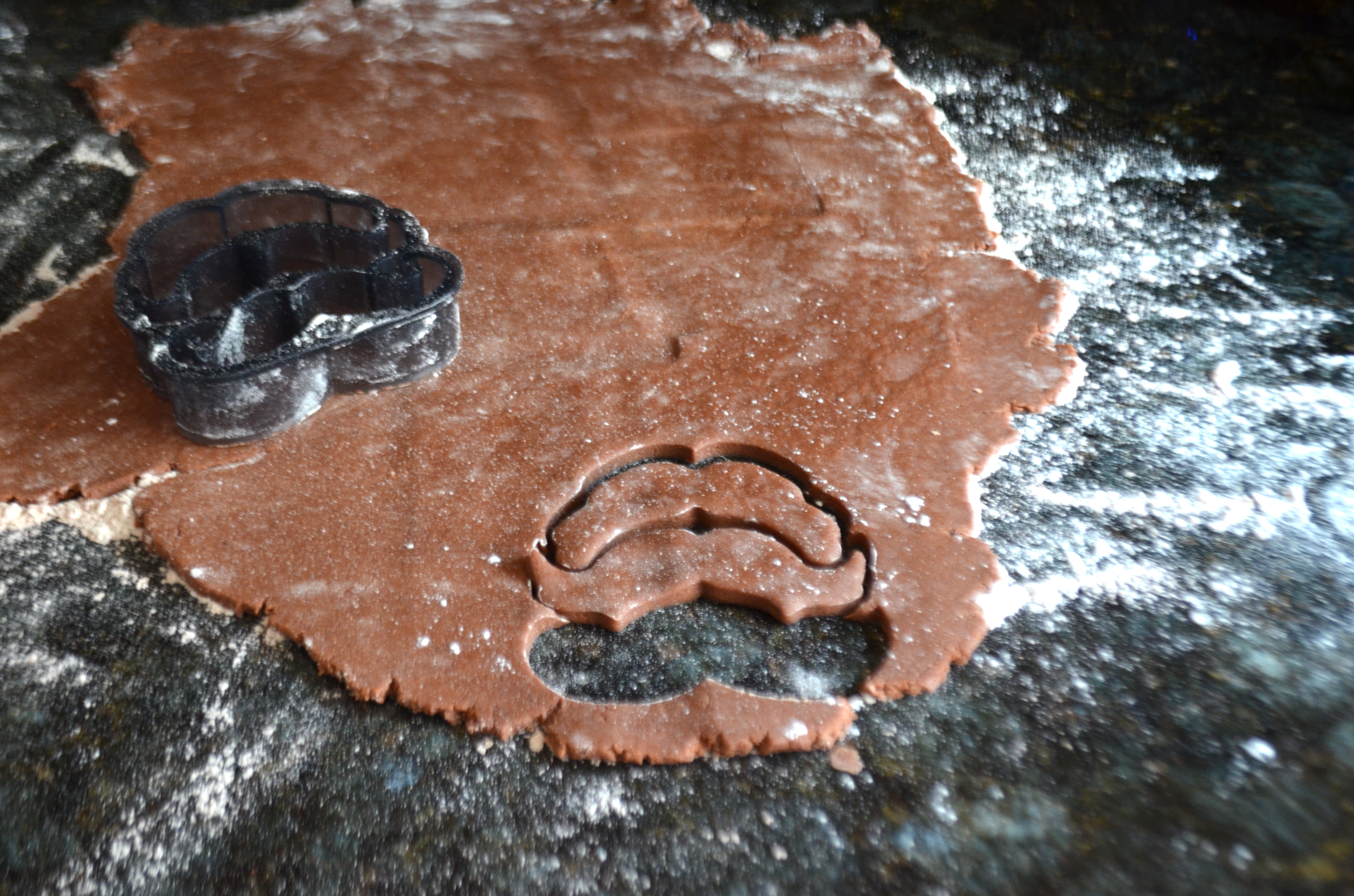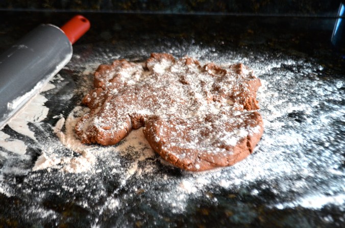 Roll dough onto a flour/cocoa powder surface (I put my dough in the refrigerator for about 15 minutes to chill it, if you can make ahead of time, I recommend chilling dough overnight.).