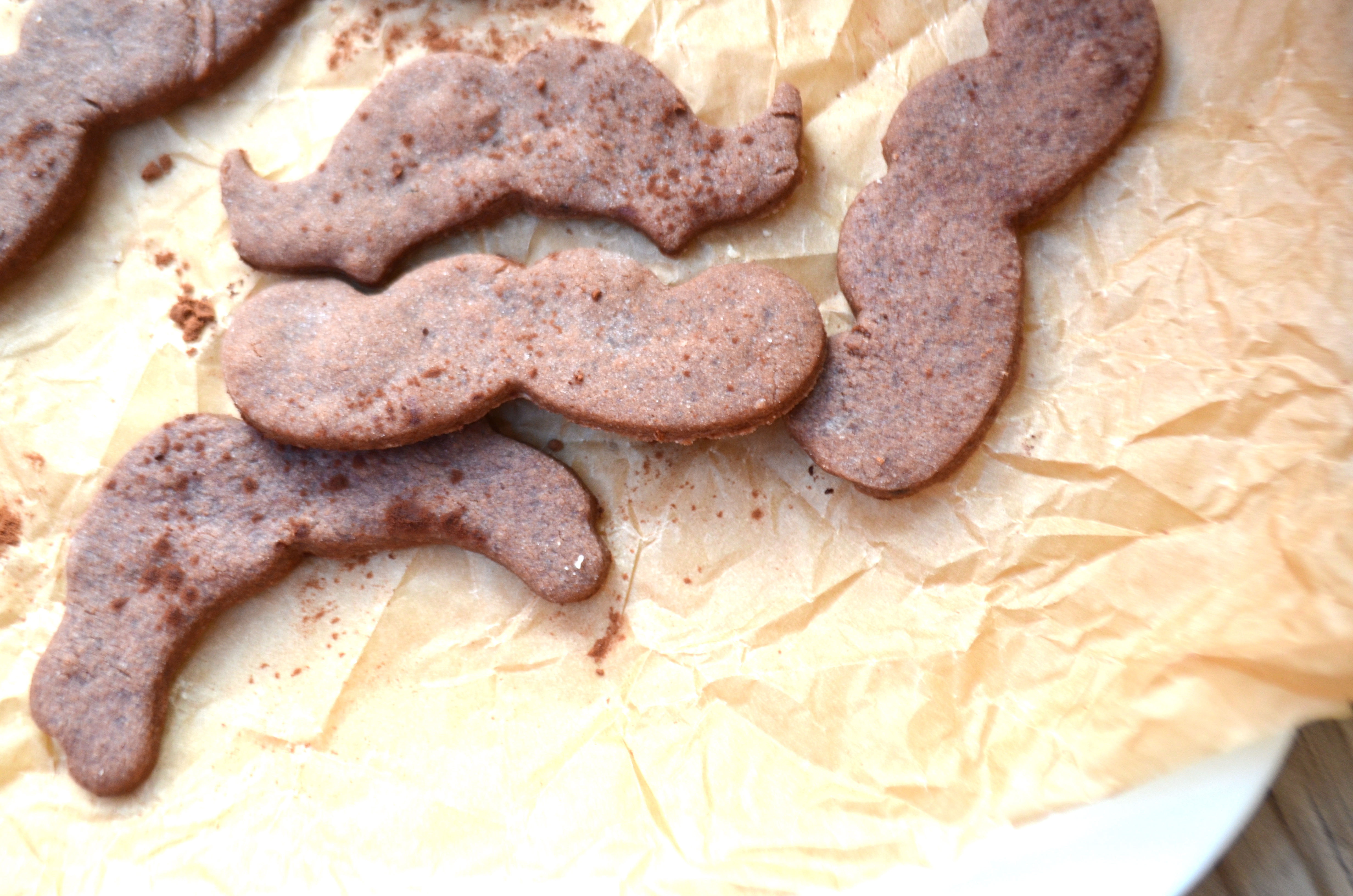 Dust with cocoa powder or powdered sugar. I was planning on frosting these cookies but did not have the time, using a fun frosting tip you could make some fun designs in all different colors for these mustaches!