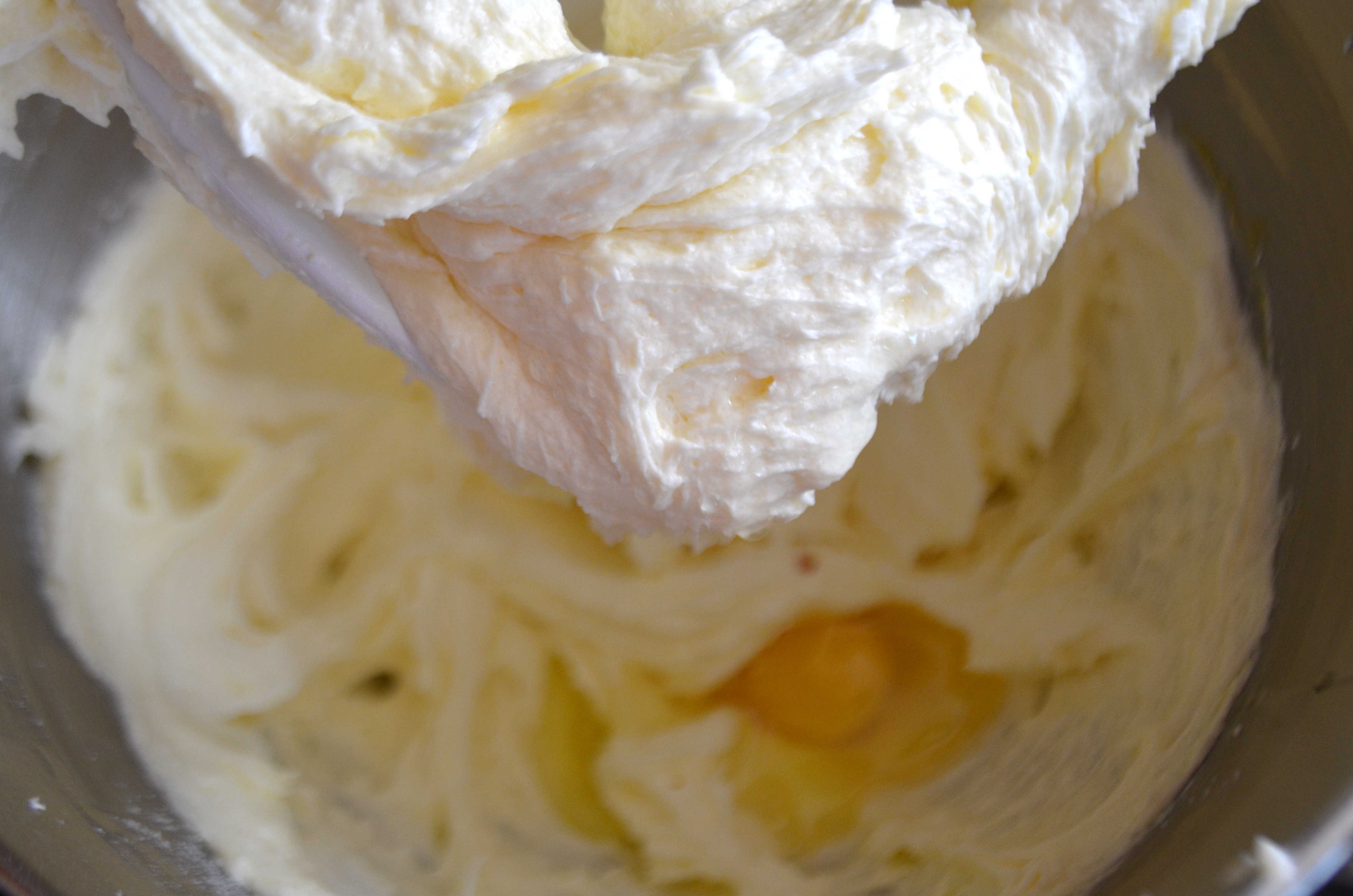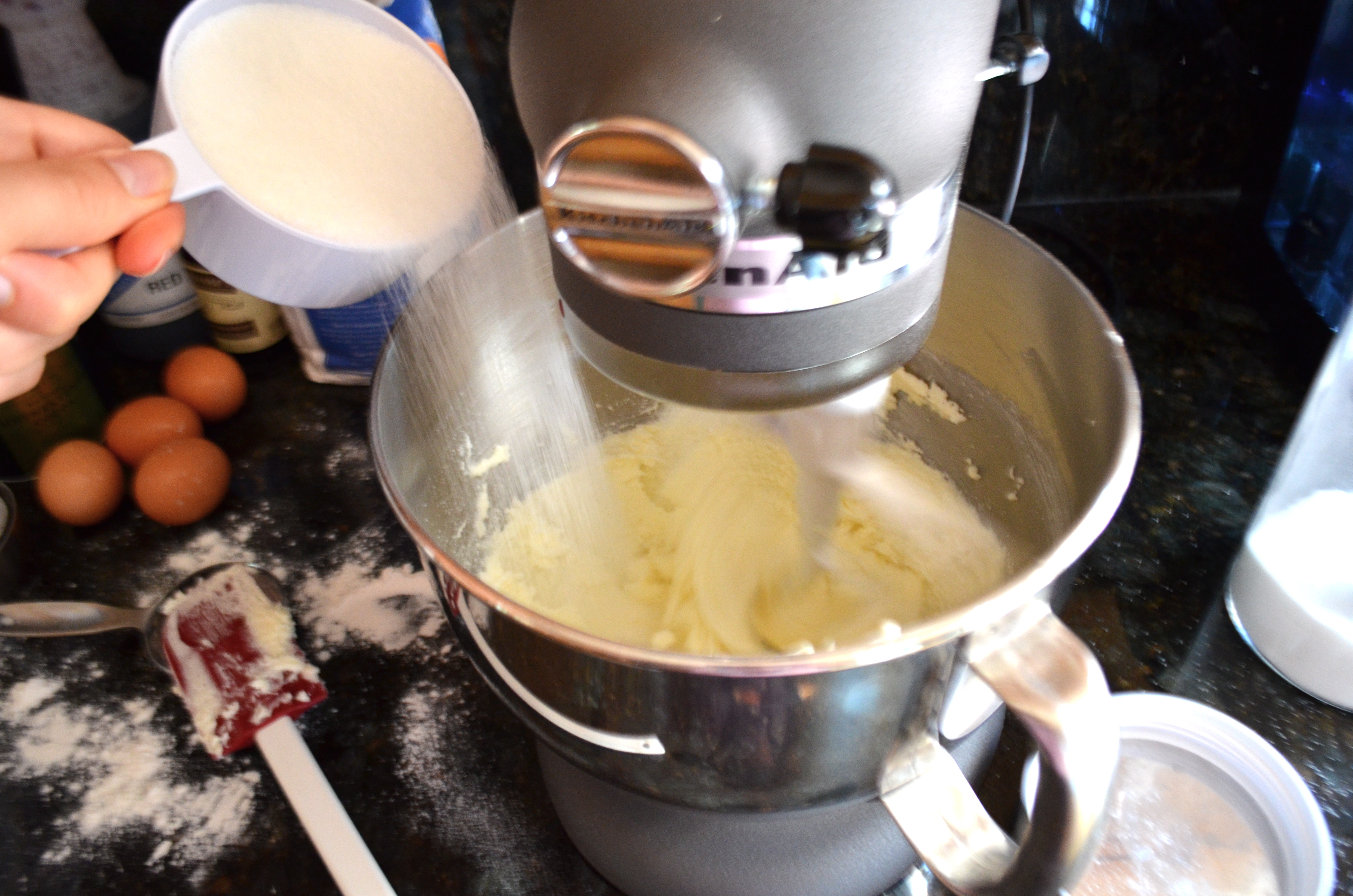 In a bowl of an electric mixer, cream butter until smooth and add sugar. Beat until fluffy and add eggs, one at a time beating well after each addition.